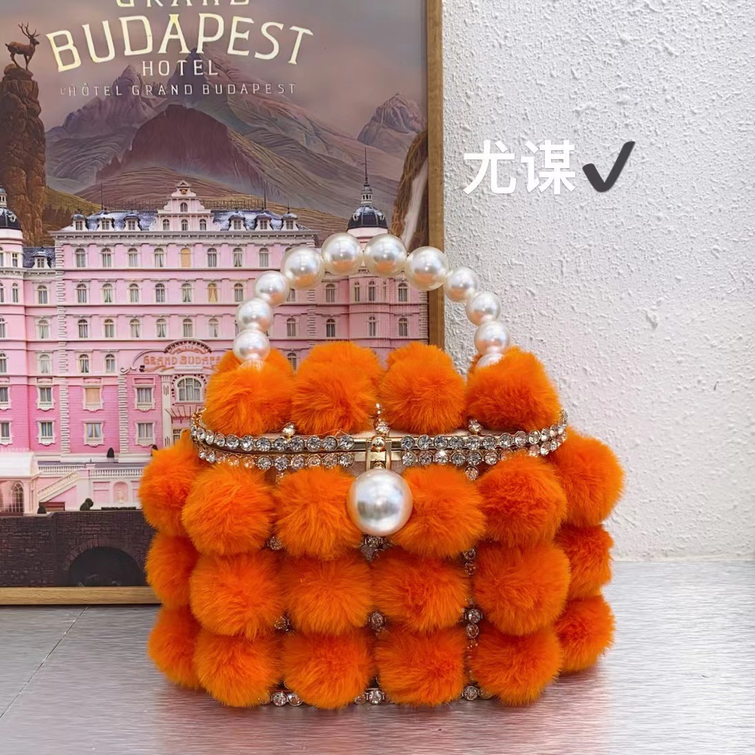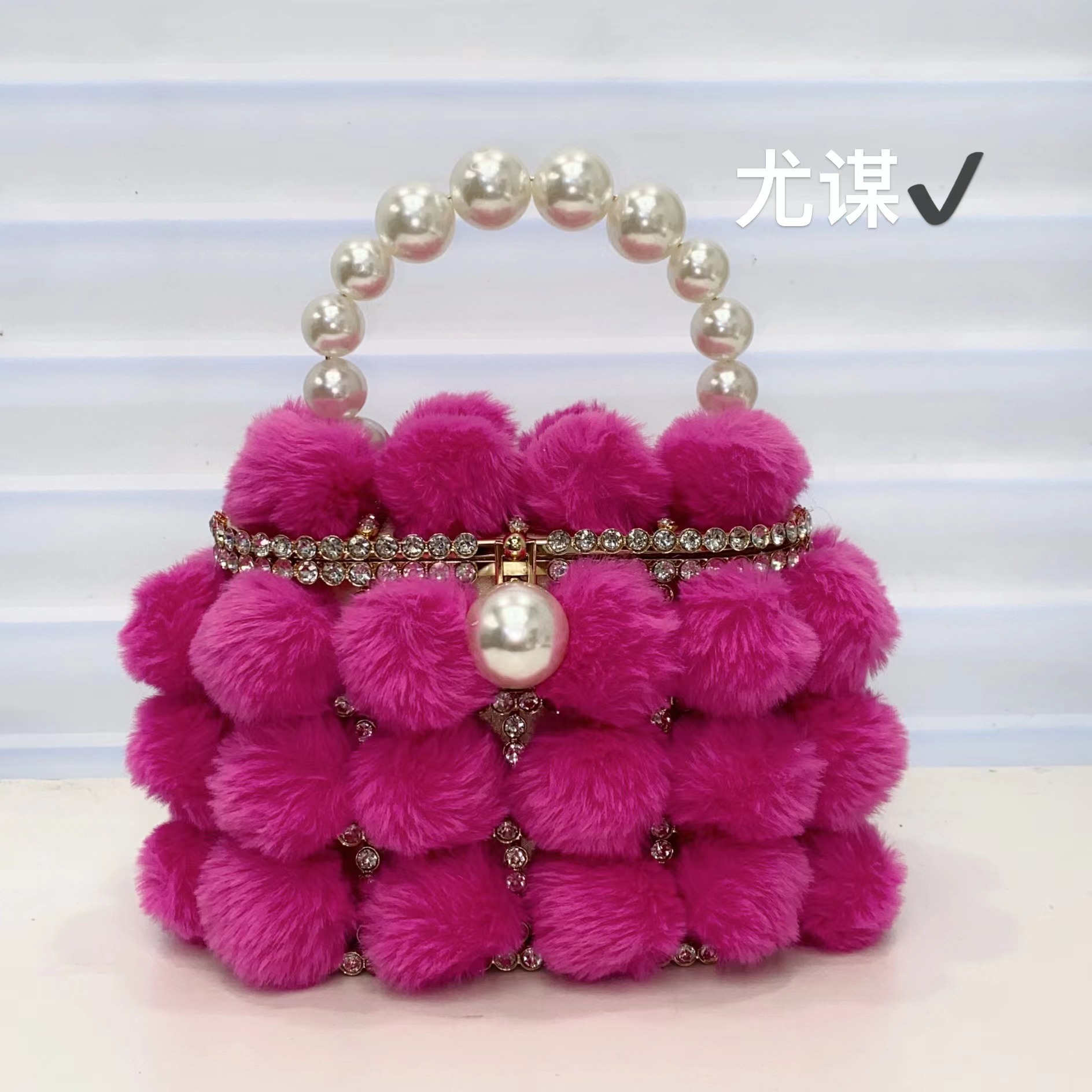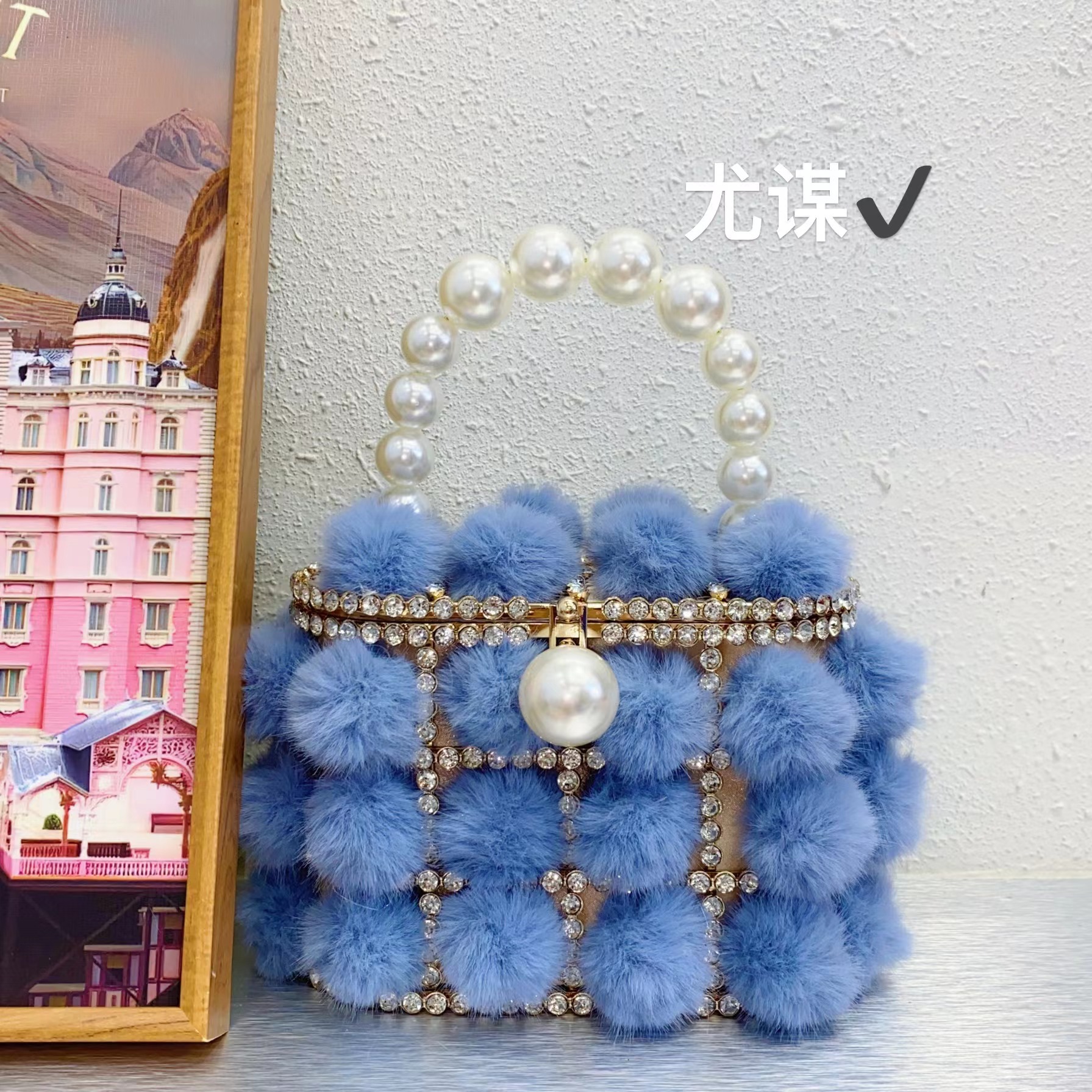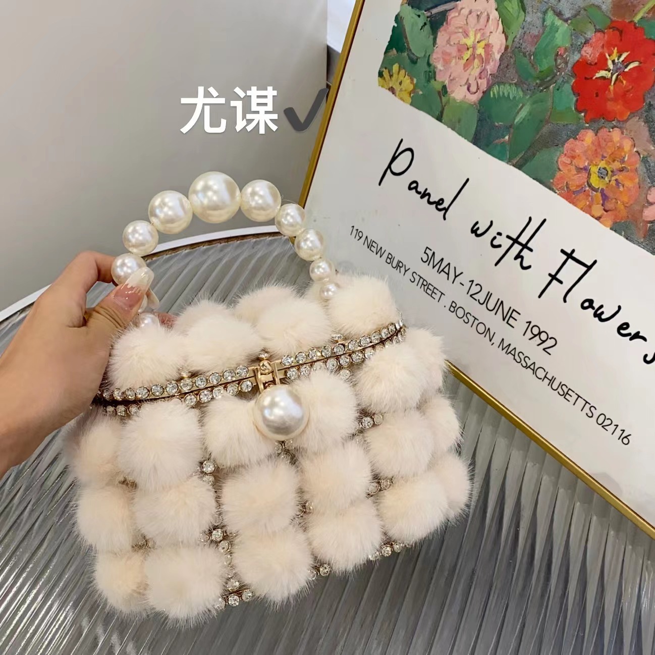 금속 진주 밍크 모피 야채 바구니 버킷 가방 연회 빛나는 라인스톤 봉제 새장 손 크로스 백