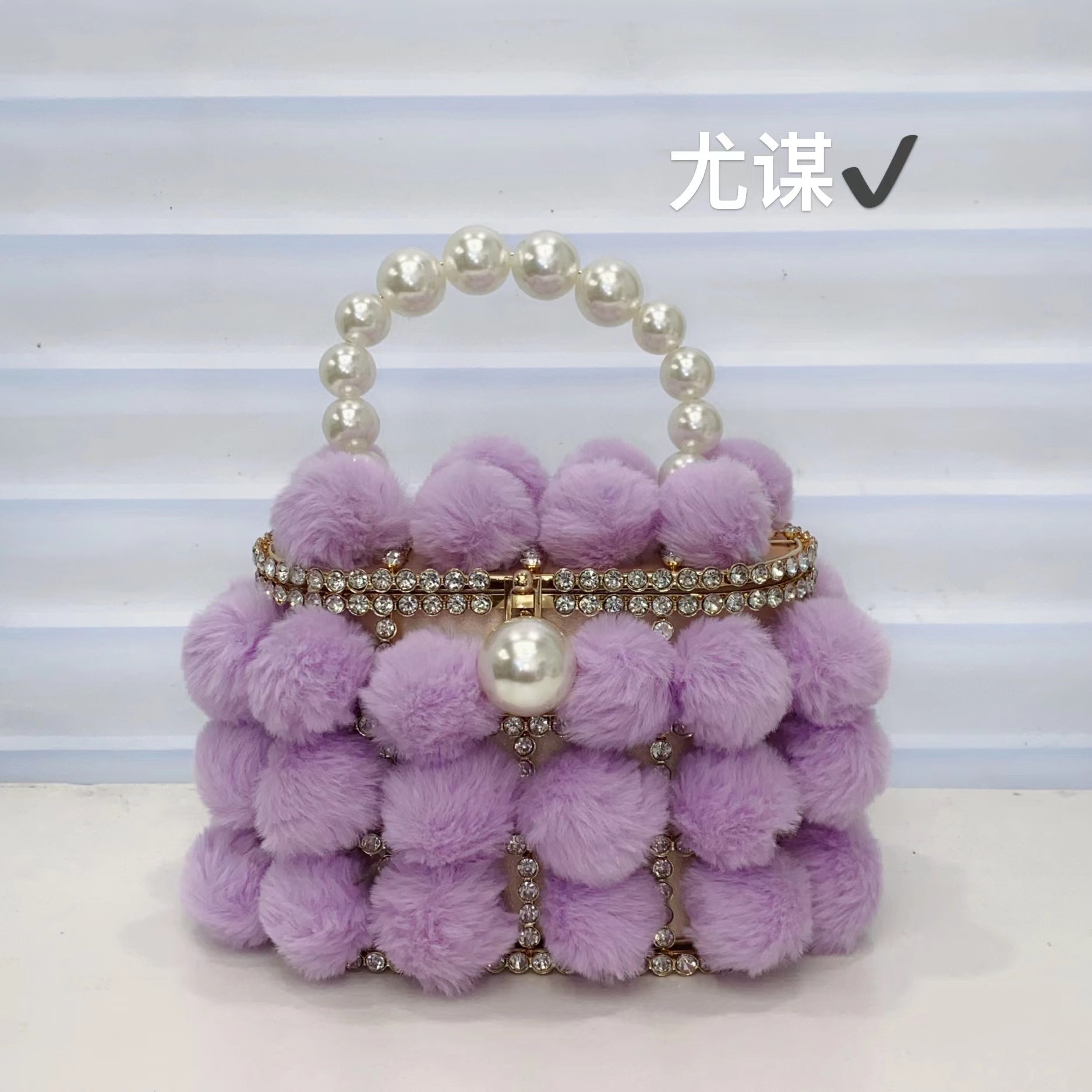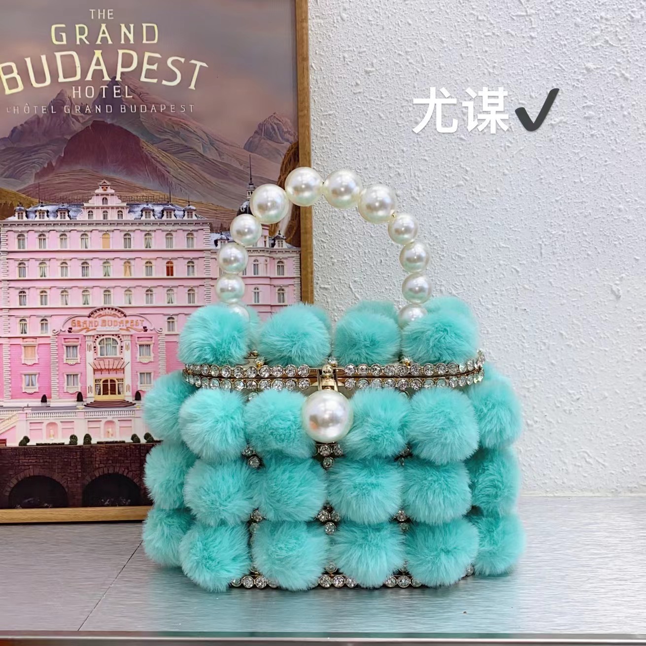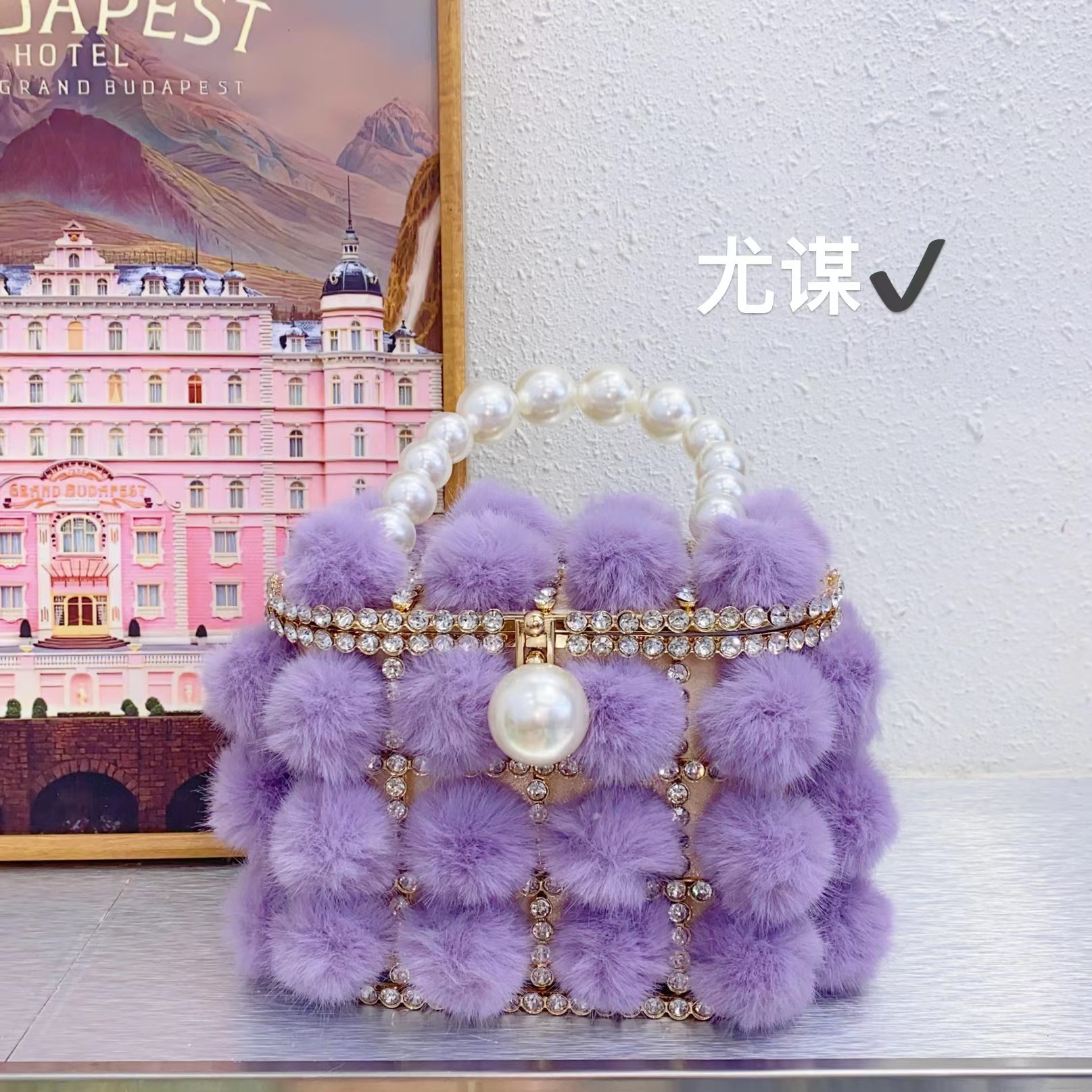 금속 진주 밍크 모피 야채 바구니 버킷 가방 연회 빛나는 라인스톤 봉제 새장 손 크로스 백스토어 가기