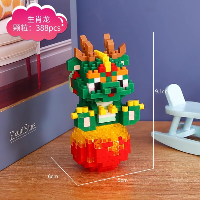 새 해 선물 호환 레고 드래곤 년 부의 작은 요정 신 장식 작은 입자 빌딩 블록 인형 교육 장난감스토어 가기