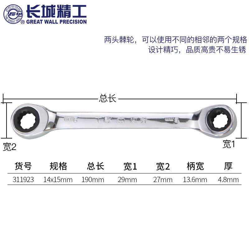 만리장성 래칫 매화 렌치 양두 이중 매화 렌치 자동 수리 도구 8-10-12-13-14-15-17-19m스토어 가기