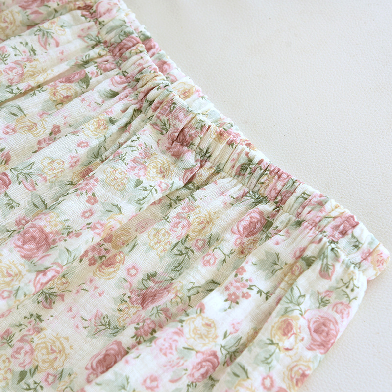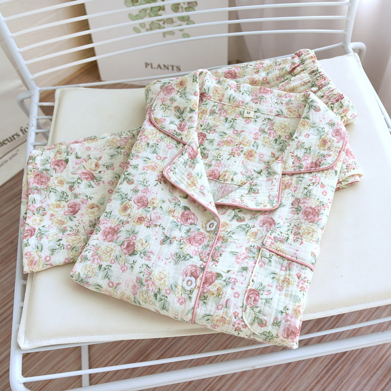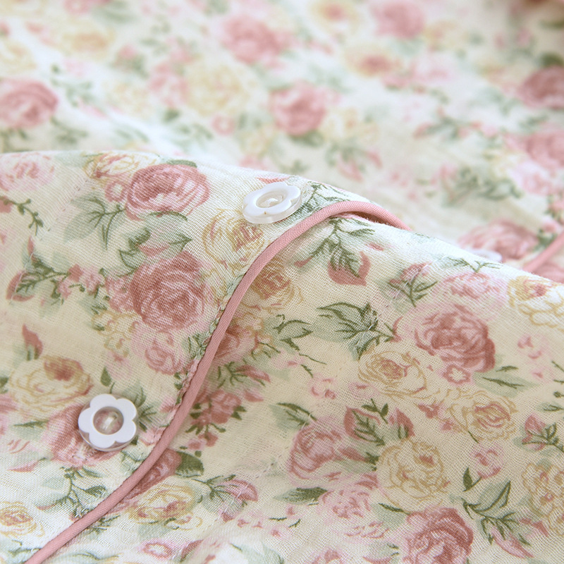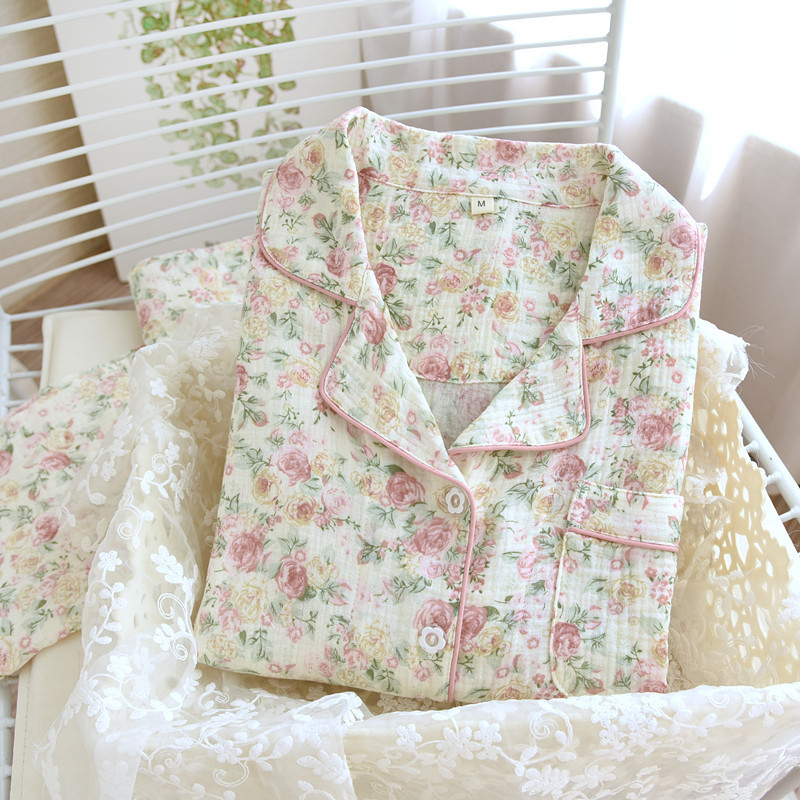 달콤한 인쇄 잠옷 여성의 긴 소매 봄/여름 가을 코튼 거즈 얇은 느슨한 홈 웨어 세트 코튼