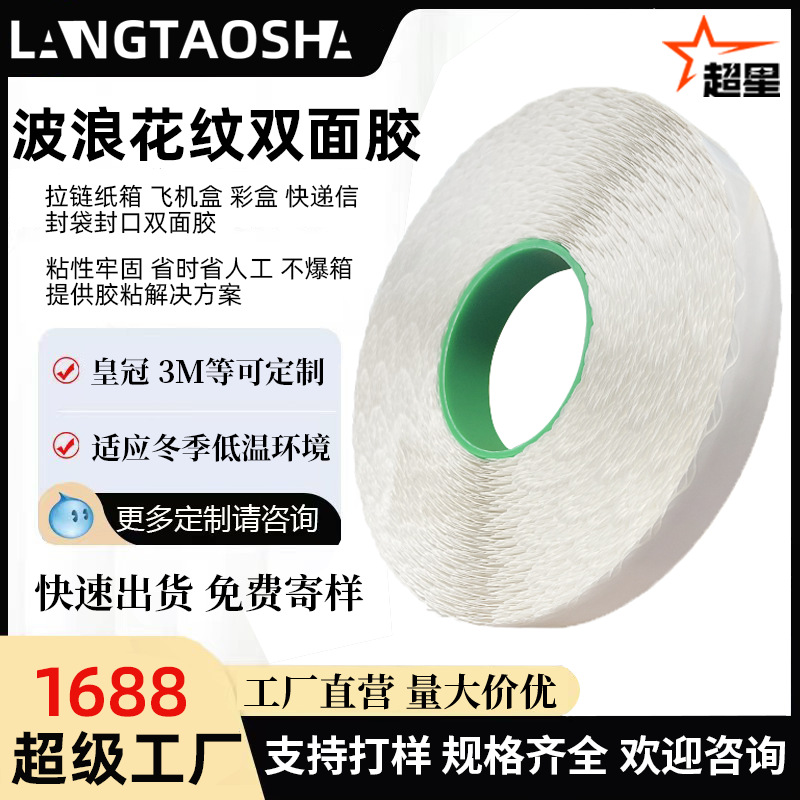 Langtaosha 종이 상자 레이스 양면 접착 지퍼 상자 물결 모양 도로 양면 접착 강한 접착 높은 온도 저항 패턴 양면 접착제