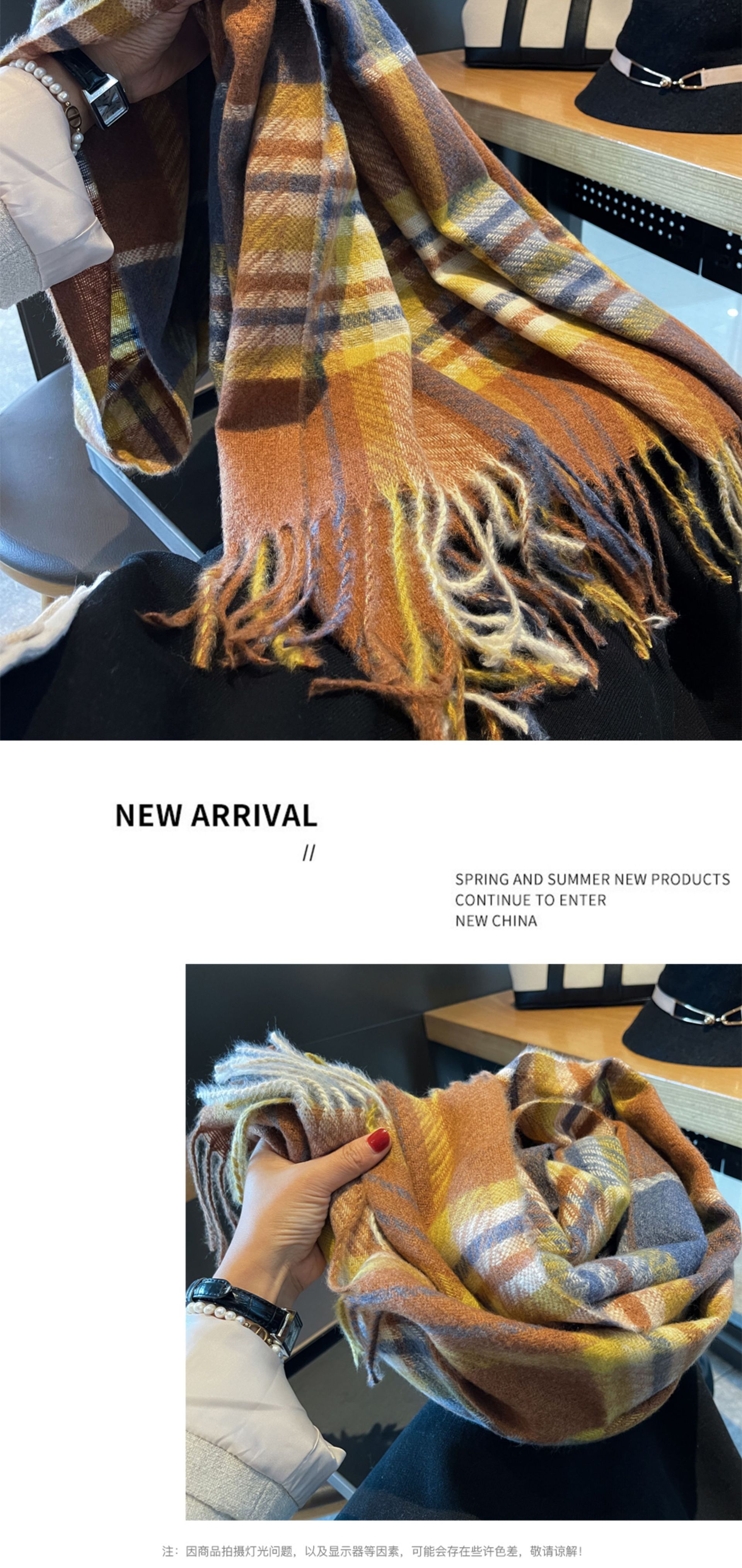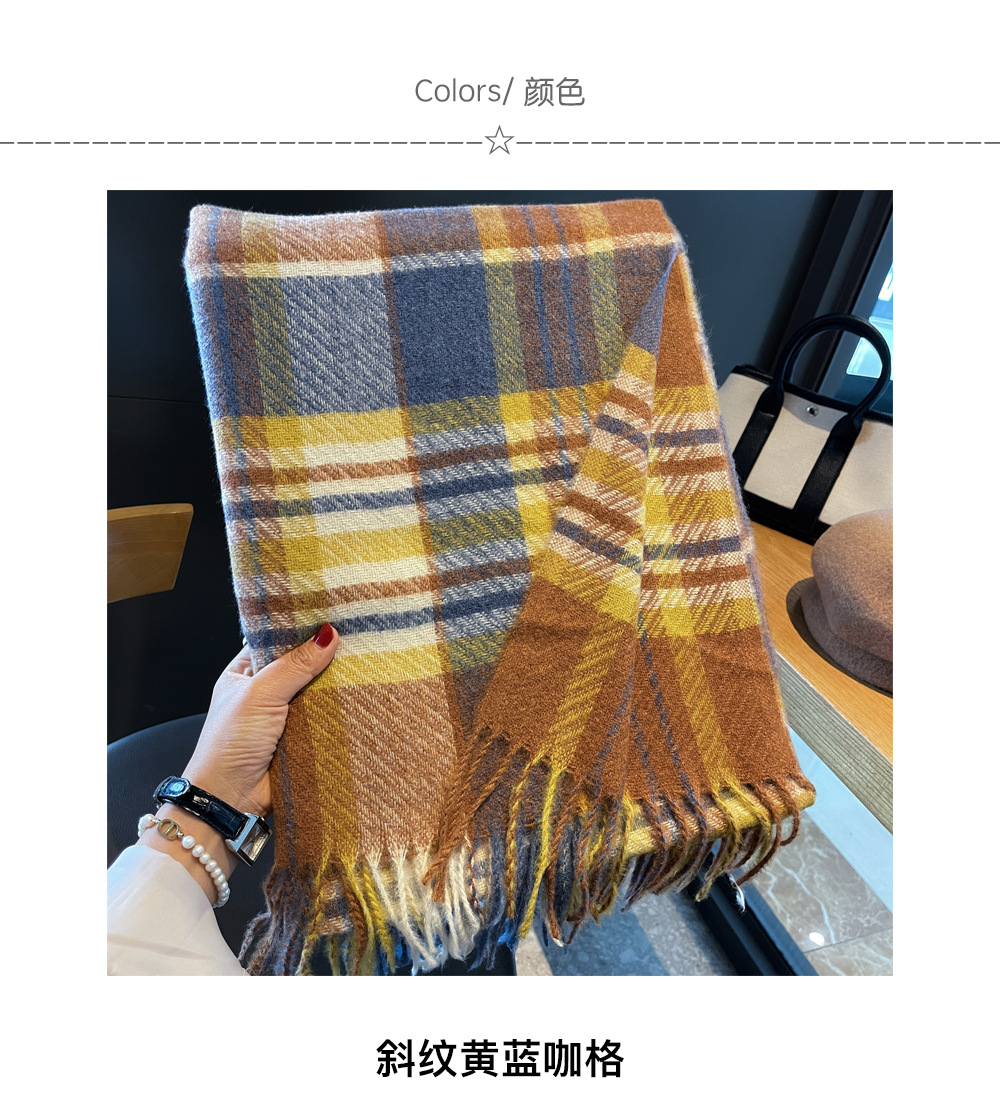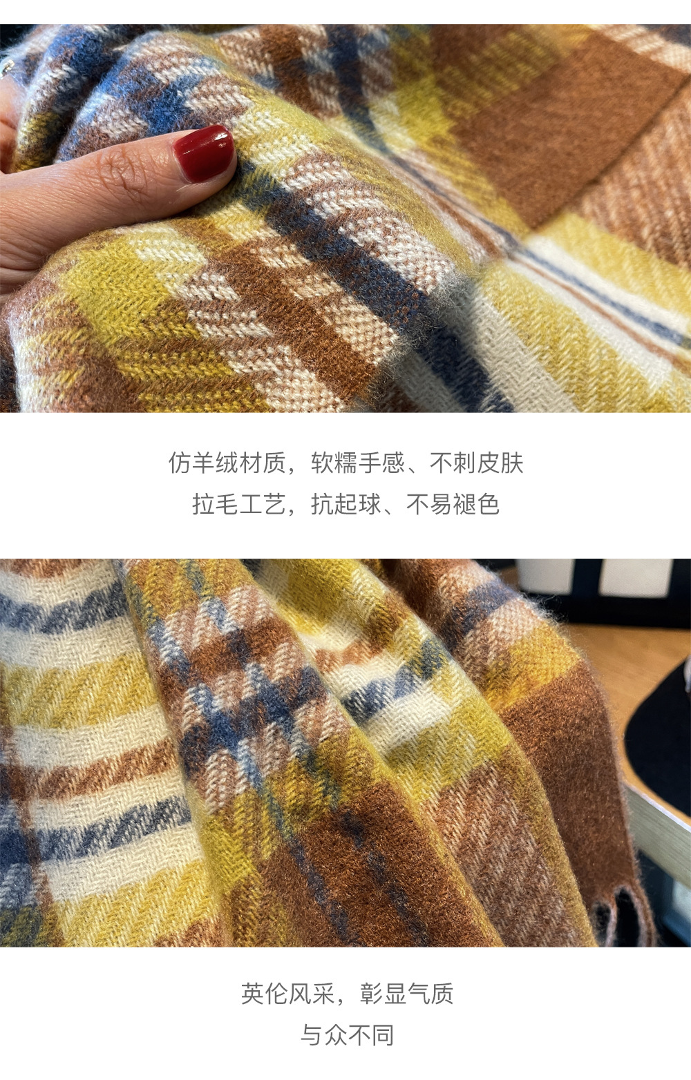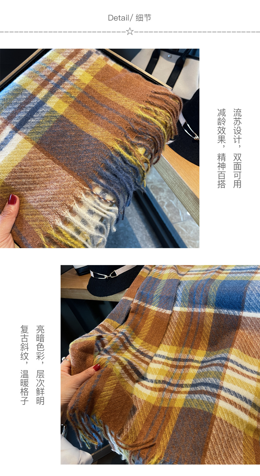 减龄韩系格子仿羊绒冬季围巾女软糯保暖大披肩加大加厚学生围脖潮