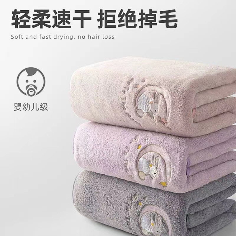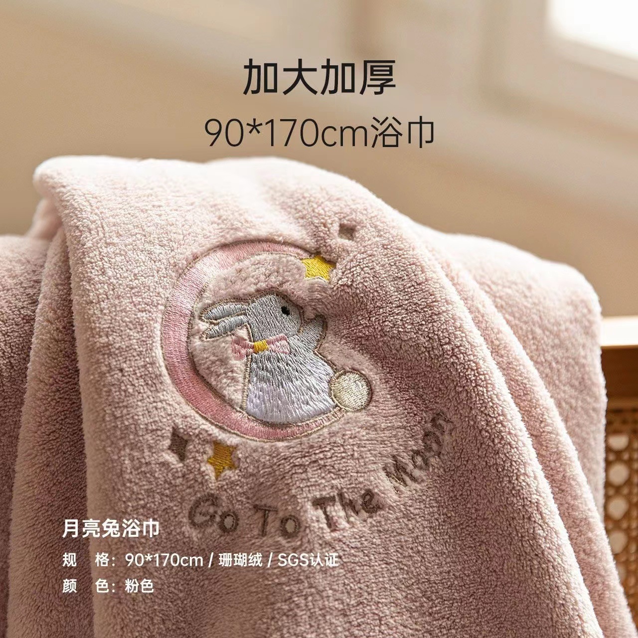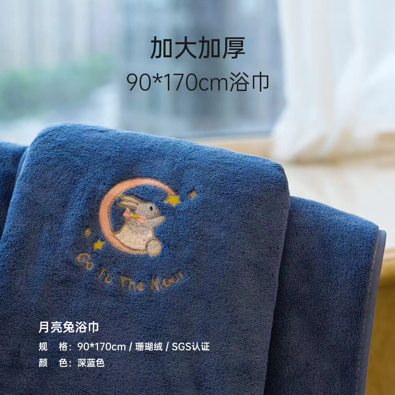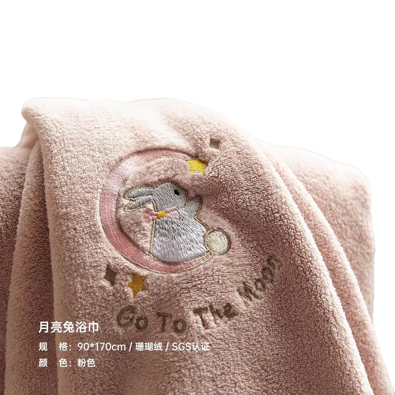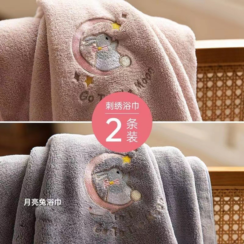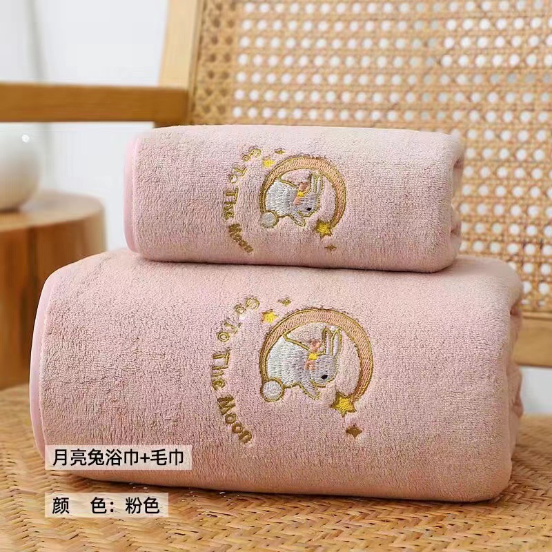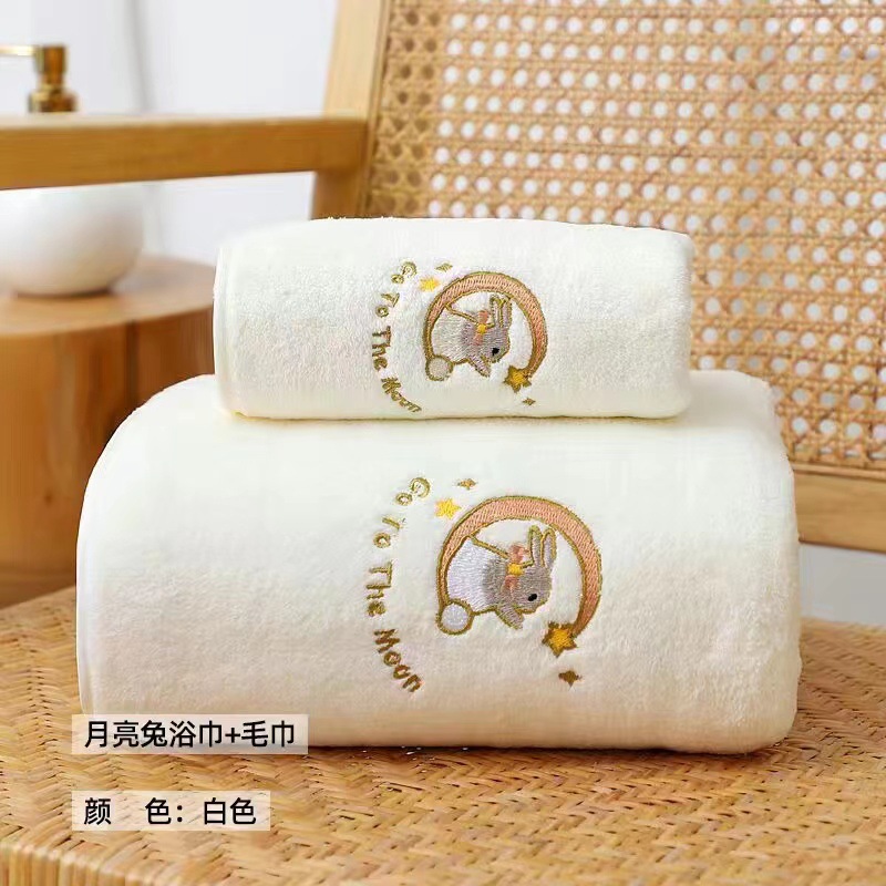 달 토끼 수건 목욕 타월 세트 산호 벨벳 자수 세트 3 조각 부드러운 흡수성 목욕 타월 가정용 수건스토어 가기