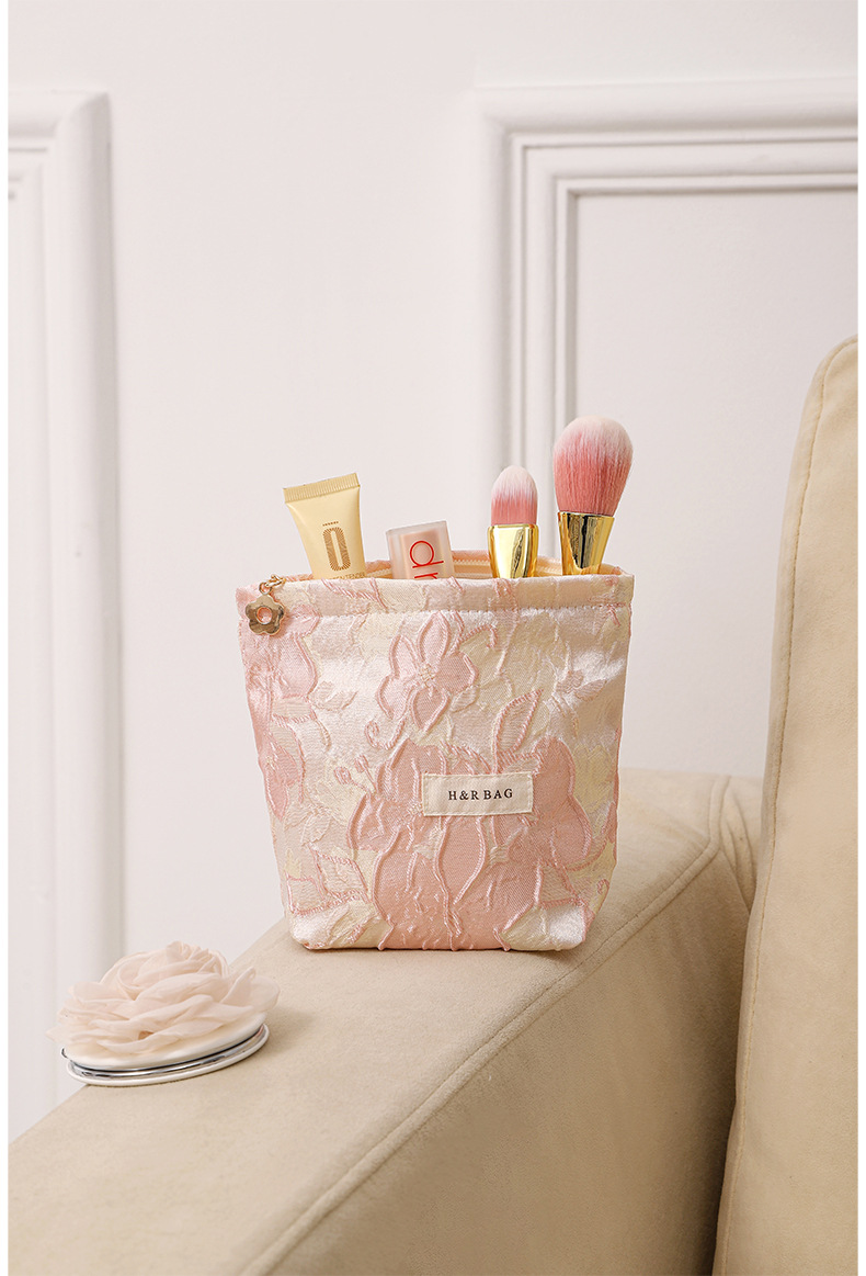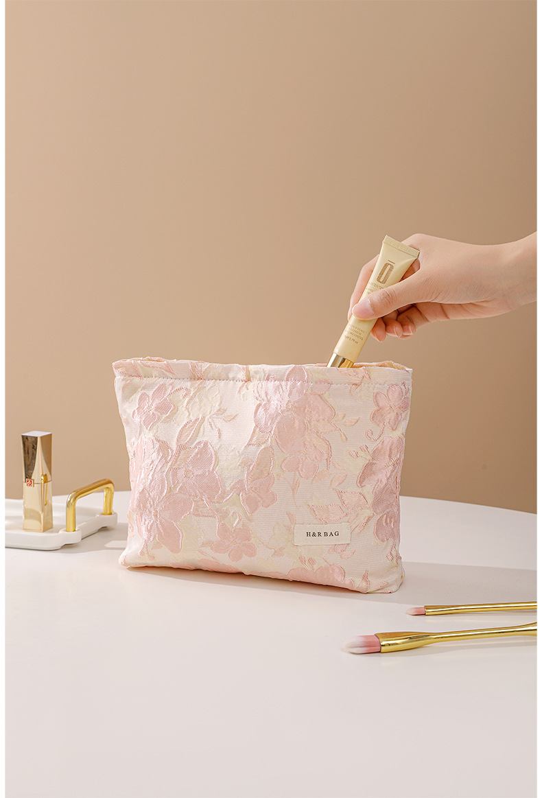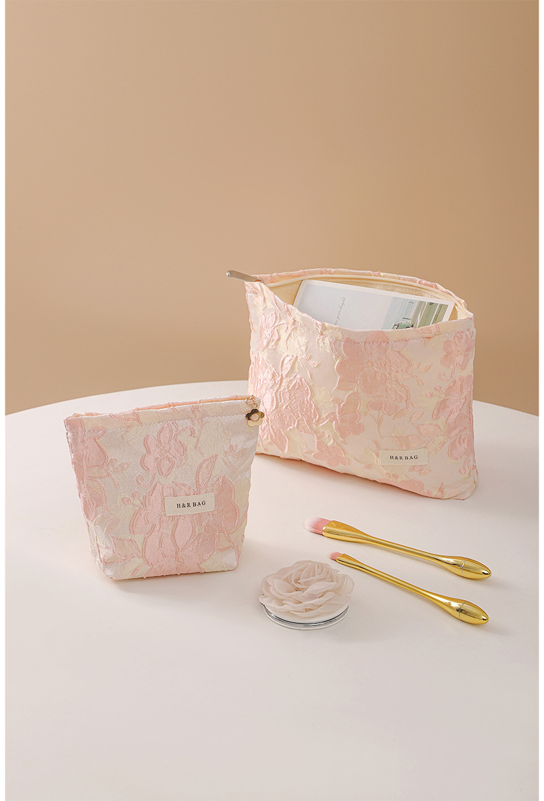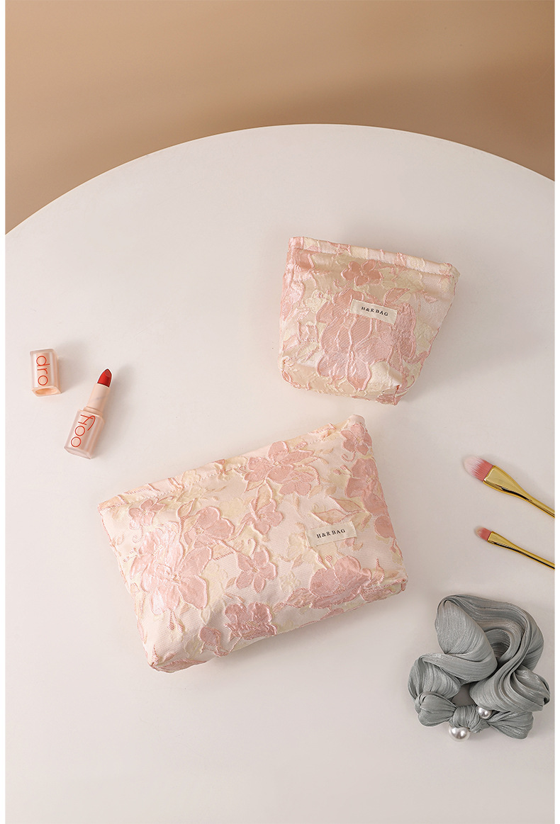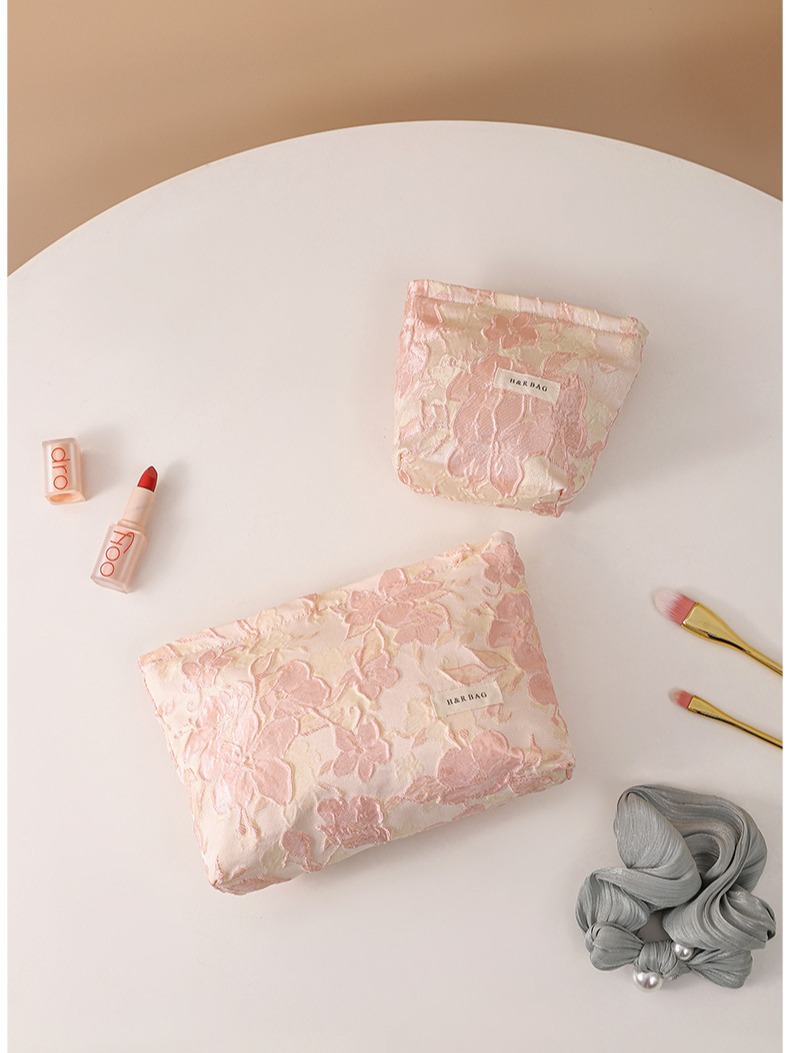 양각 된 대형 꽃 화장품 가방 휴대용 대용량 여행 휴대용 세척 가방 립스틱 스킨 케어 보관 가방