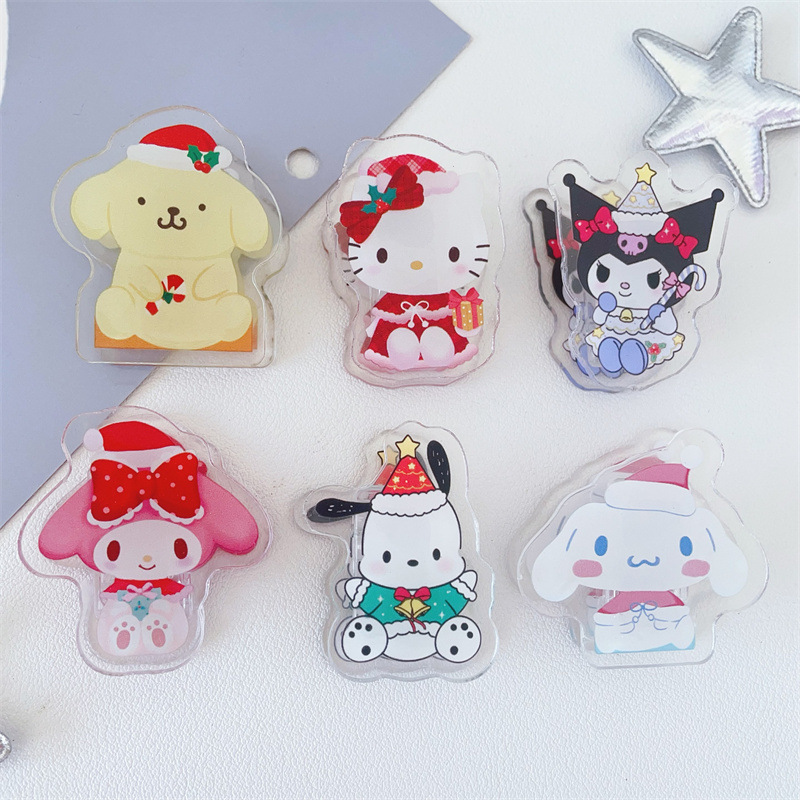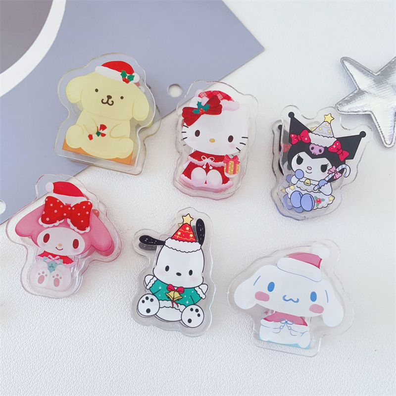 크리스마스 분위기 산리오 장식 양면 pp 클립 아크릴 학생 테스트 종이 구성 저장 플라스틱 작은 클립스토어 가기