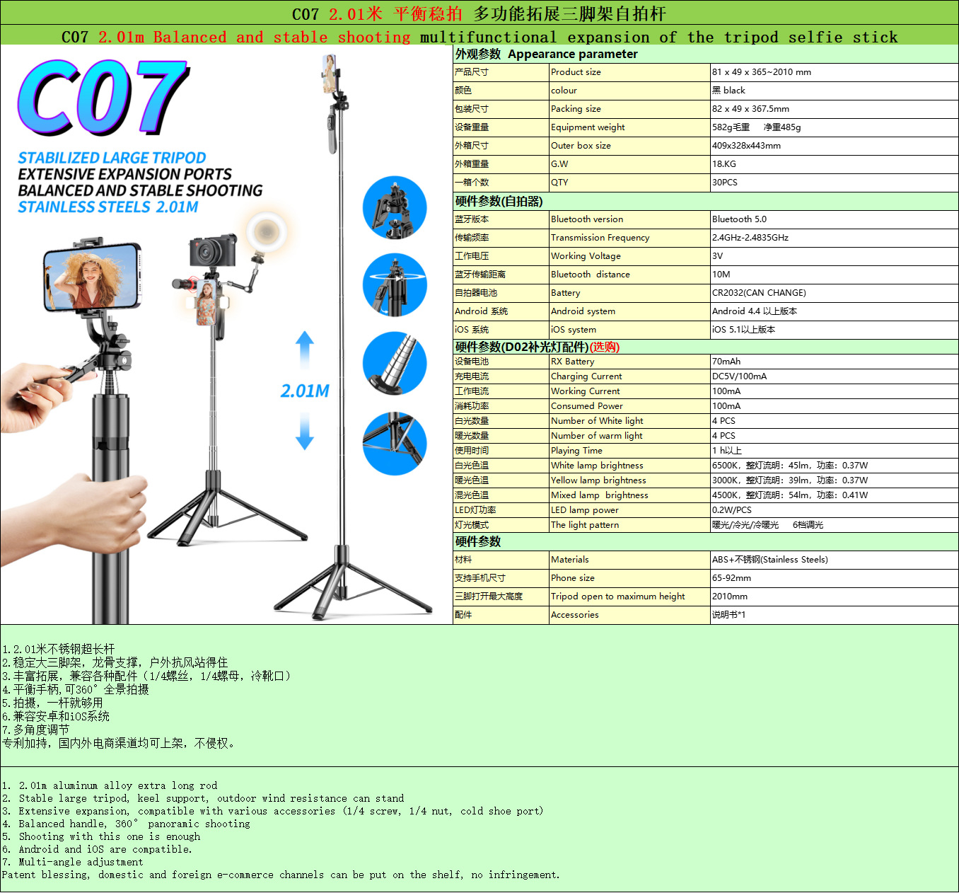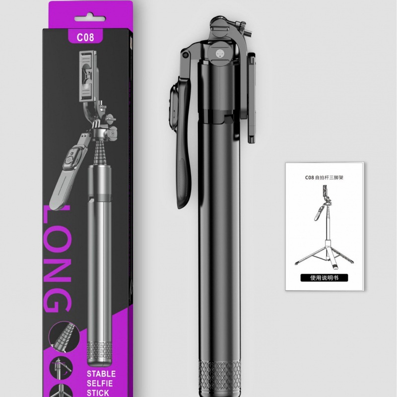 C07/C08 블루투스 셀카 스틱 삼각대 블루투스 원격 제어 휴대 전화 라이브 지원 미끄럼 방지 안정기 텔레스코픽 막대