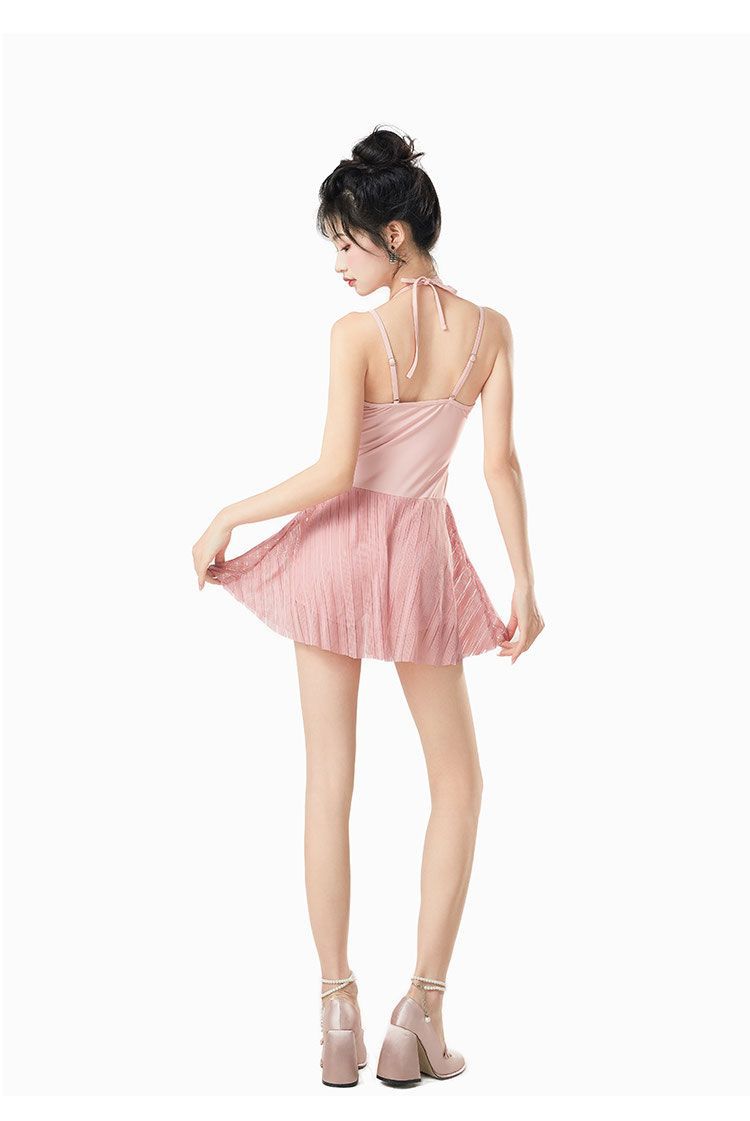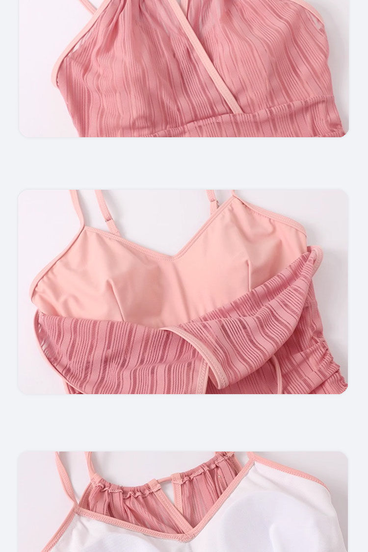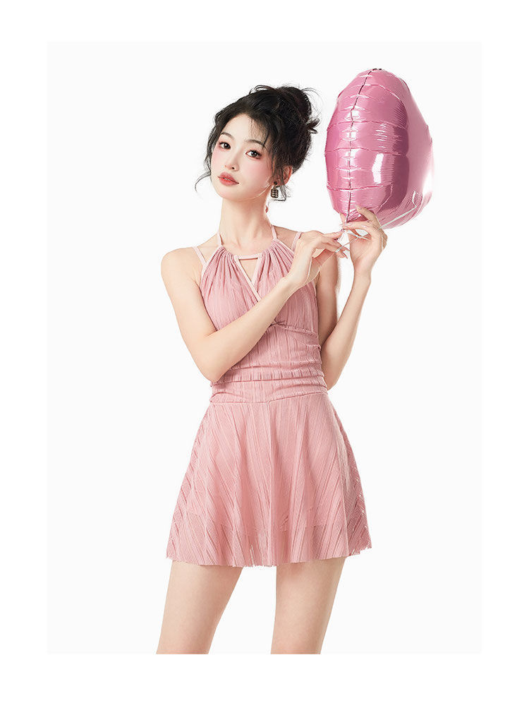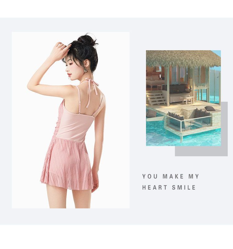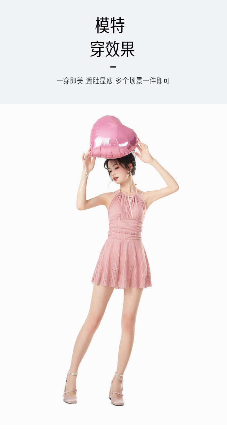 2024 새로운 원피스 원피스 스트랩 작은 가슴 허리 슬리밍 배 커버 복서 보수적 인 요정 수영복 온천스토어 가기