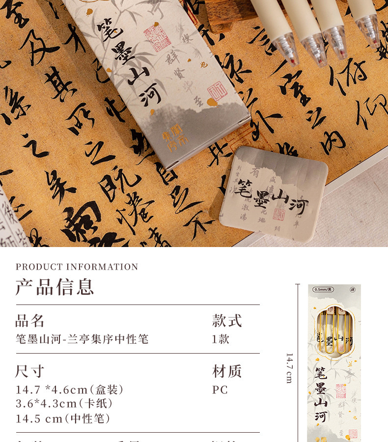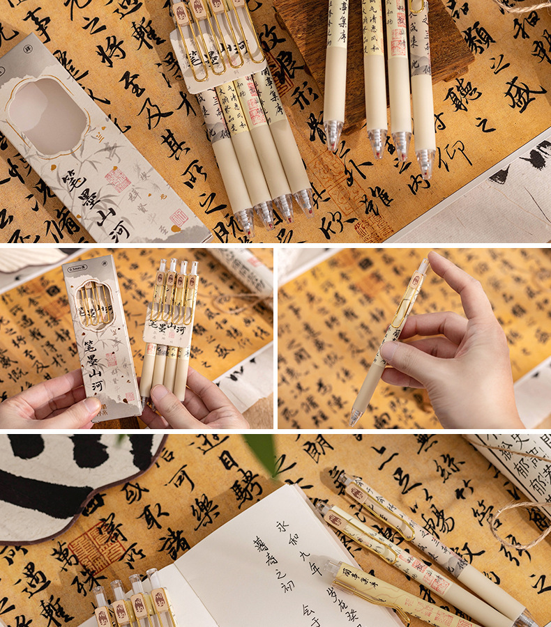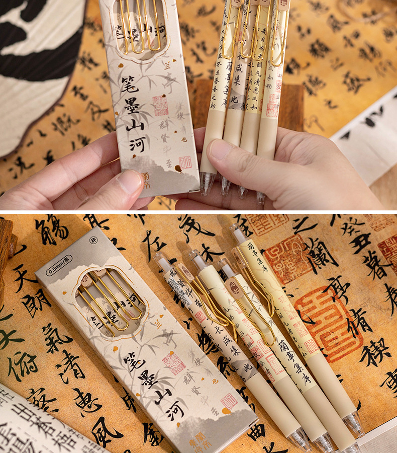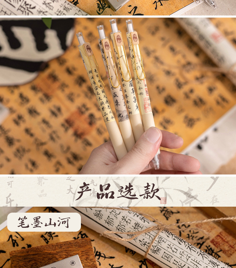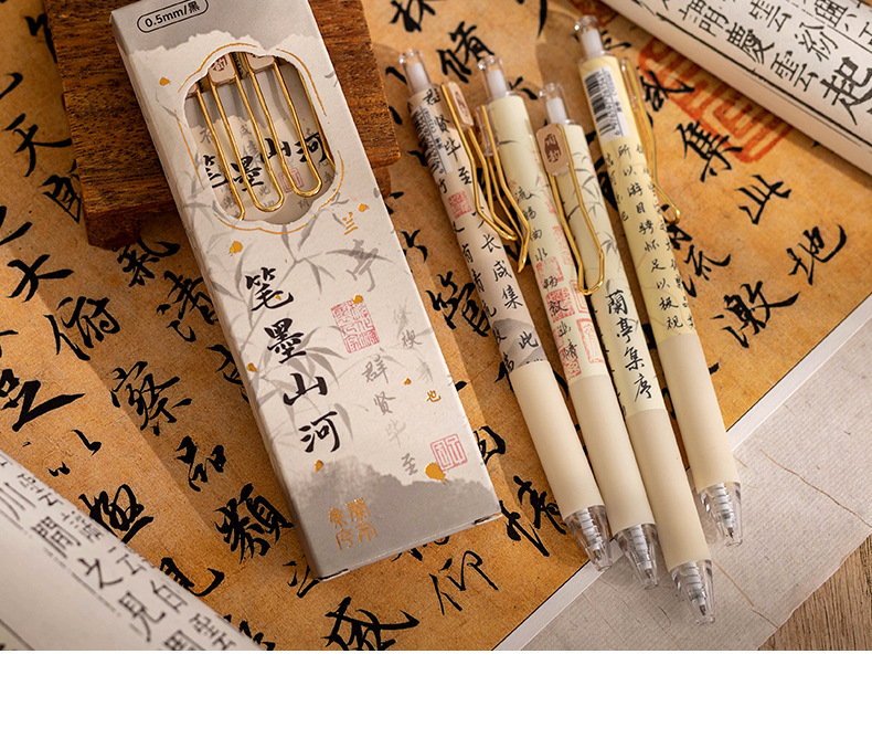 펜 잉크 산과 강 프레스 젤 펜 Lan Ting 세트 시퀀스 Retro Guofeng ST 빠른 드라이 펜 높은 색상 값 브러시 펜 블랙 펜스토어 가기
