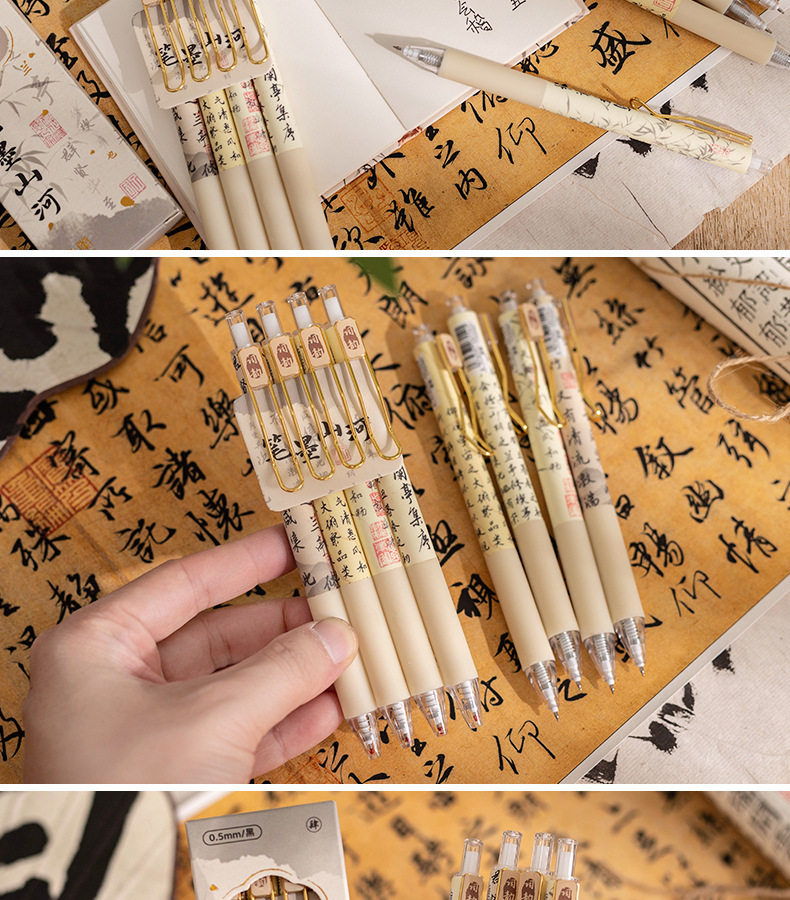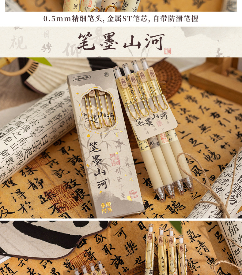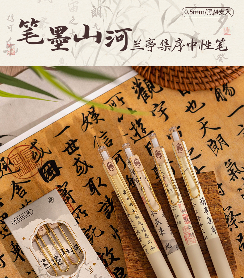 펜 잉크 산과 강 프레스 젤 펜 Lan Ting 세트 시퀀스 Retro Guofeng ST 빠른 드라이 펜 높은 색상 값 브러시 펜 블랙 펜