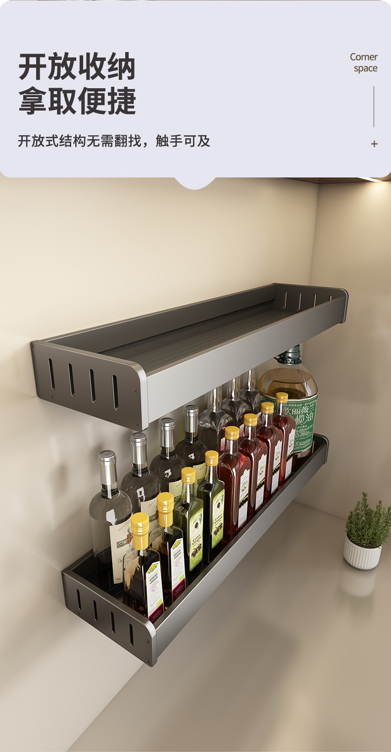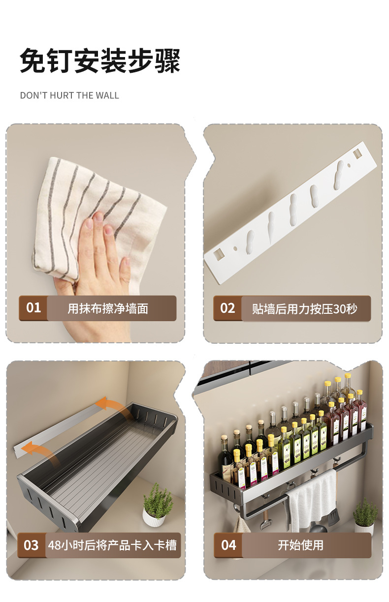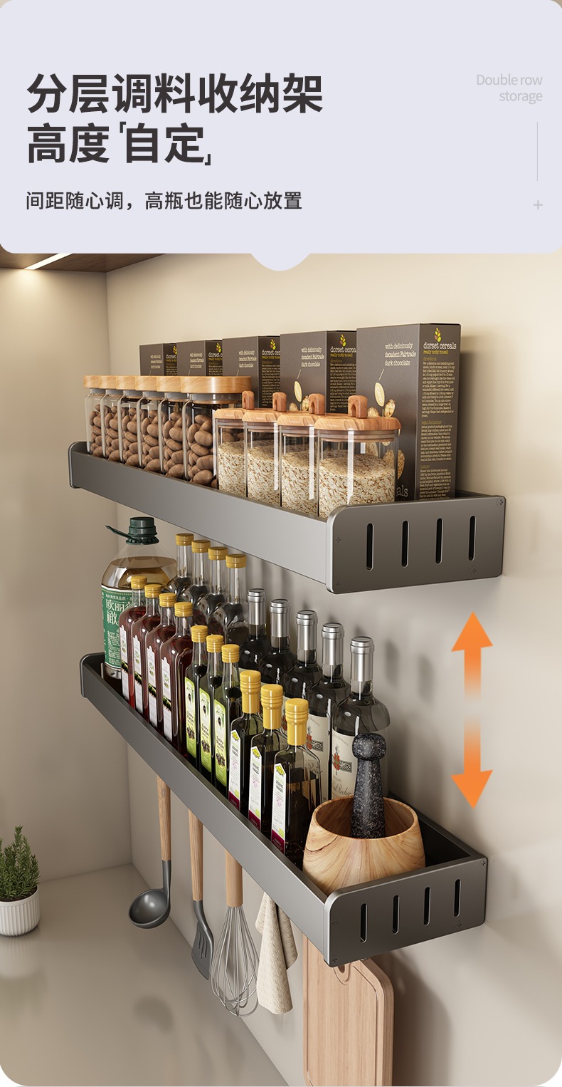 펀치가없는 주방 조미료 랙 공간 알루미늄 이동식 벽걸이 주방 랙 벽걸이 형 조미료 보관 랙
