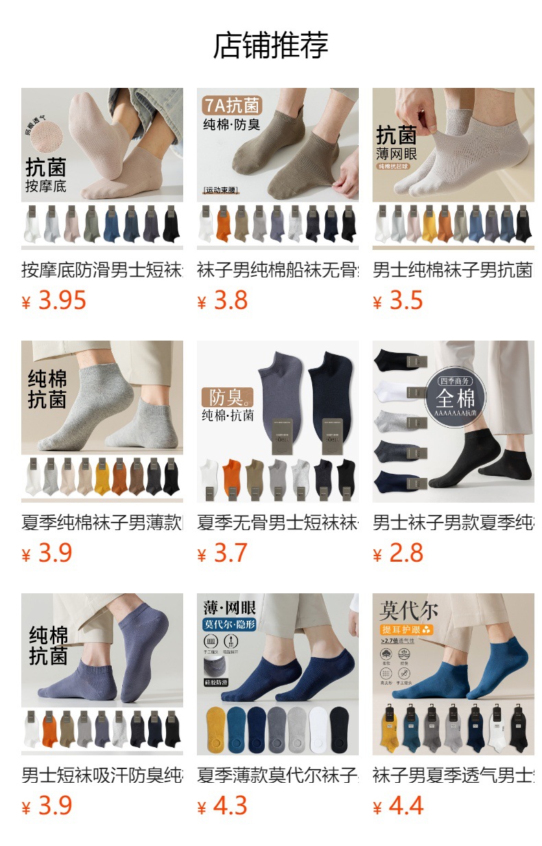 남성 양말 남성용 짧은 양말 봄 가을 순면 남성용 7A 항균 땀 흡수 방취 스포츠 화이트 보트 양말 주지 양말 산업스토어 가기