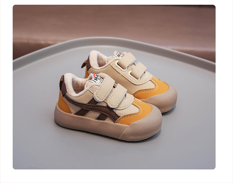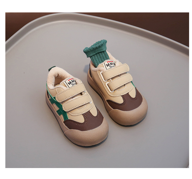 가을 겨울용 플리스 안감 아동 캐주얼 신발, 부드러운 밑창 남아 운동화, 1-6세용 면화 신발, 아기 발차기 방지 신발, 유아 및 어린이용