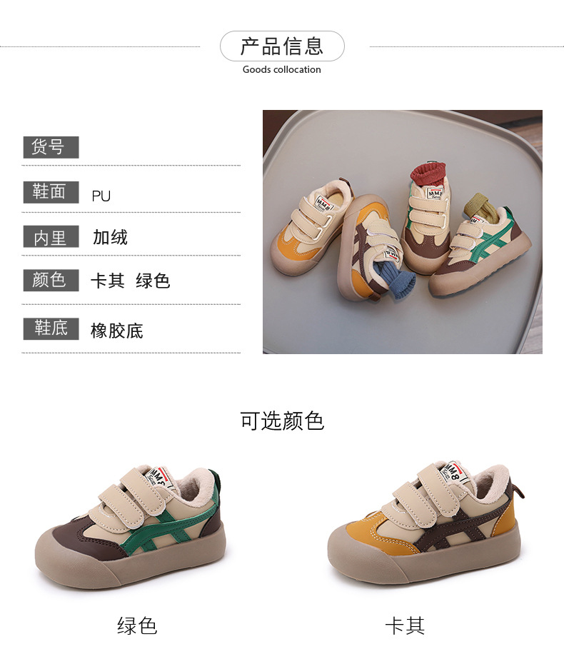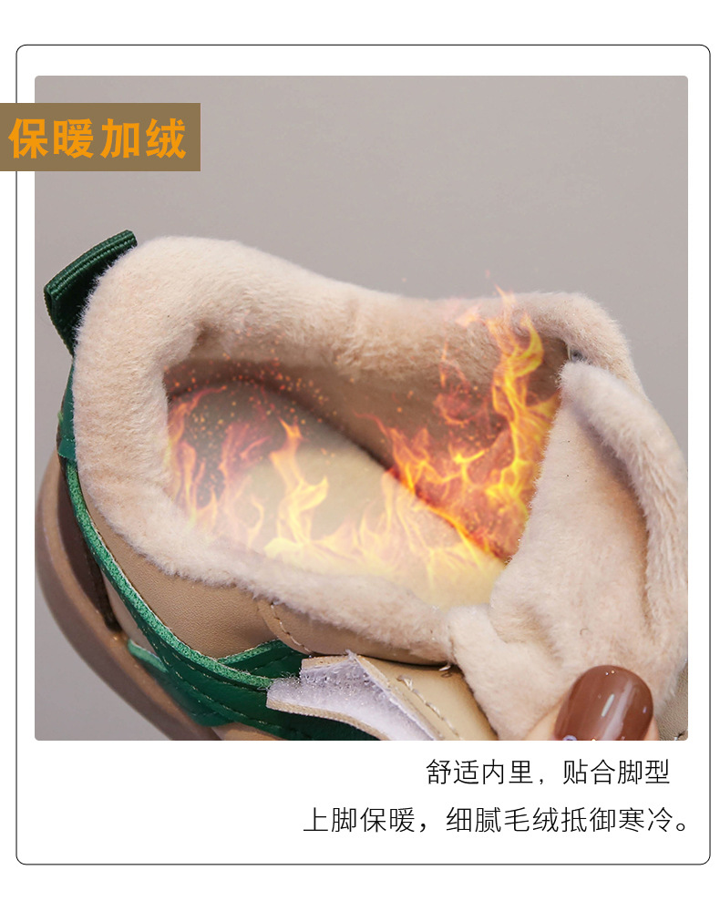 가을 겨울용 플리스 안감 아동 캐주얼 신발, 부드러운 밑창 남아 운동화, 1-6세용 면화 신발, 아기 발차기 방지 신발, 유아 및 어린이용스토어 가기
