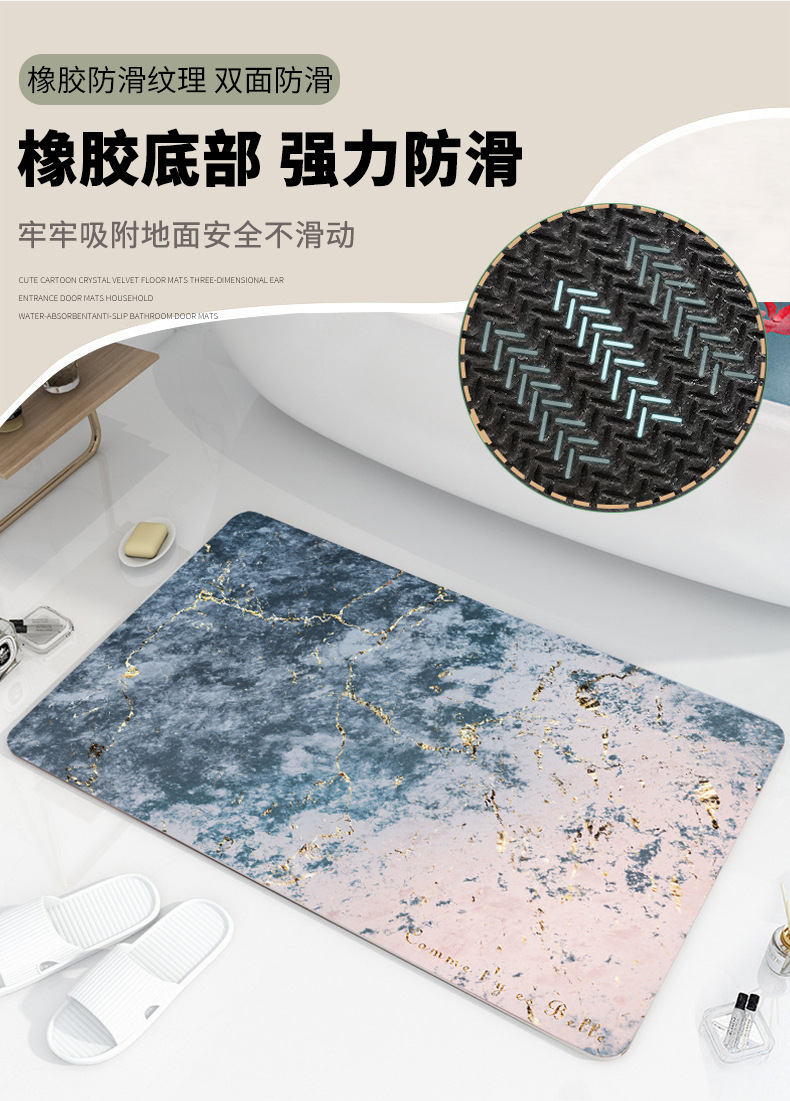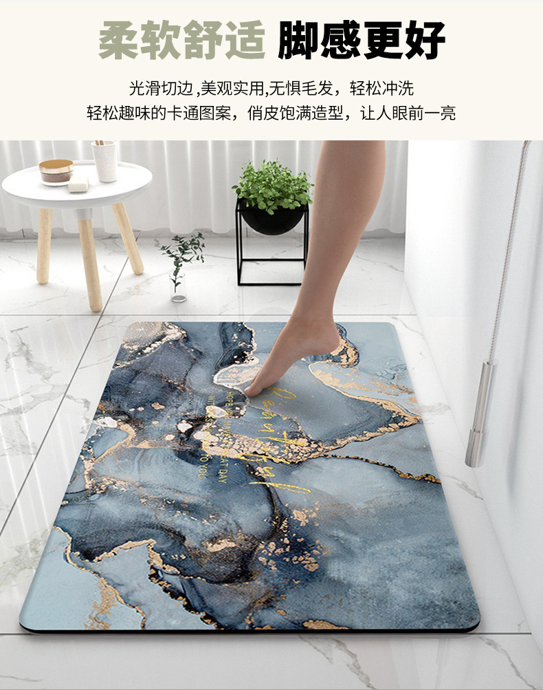 가벼운 고급 대리석 욕실 바닥 매트 Diatom 진흙 흡수성 빠른 건조 발 매트 화장실 미끄럼 방지 가정용 카펫스토어 가기