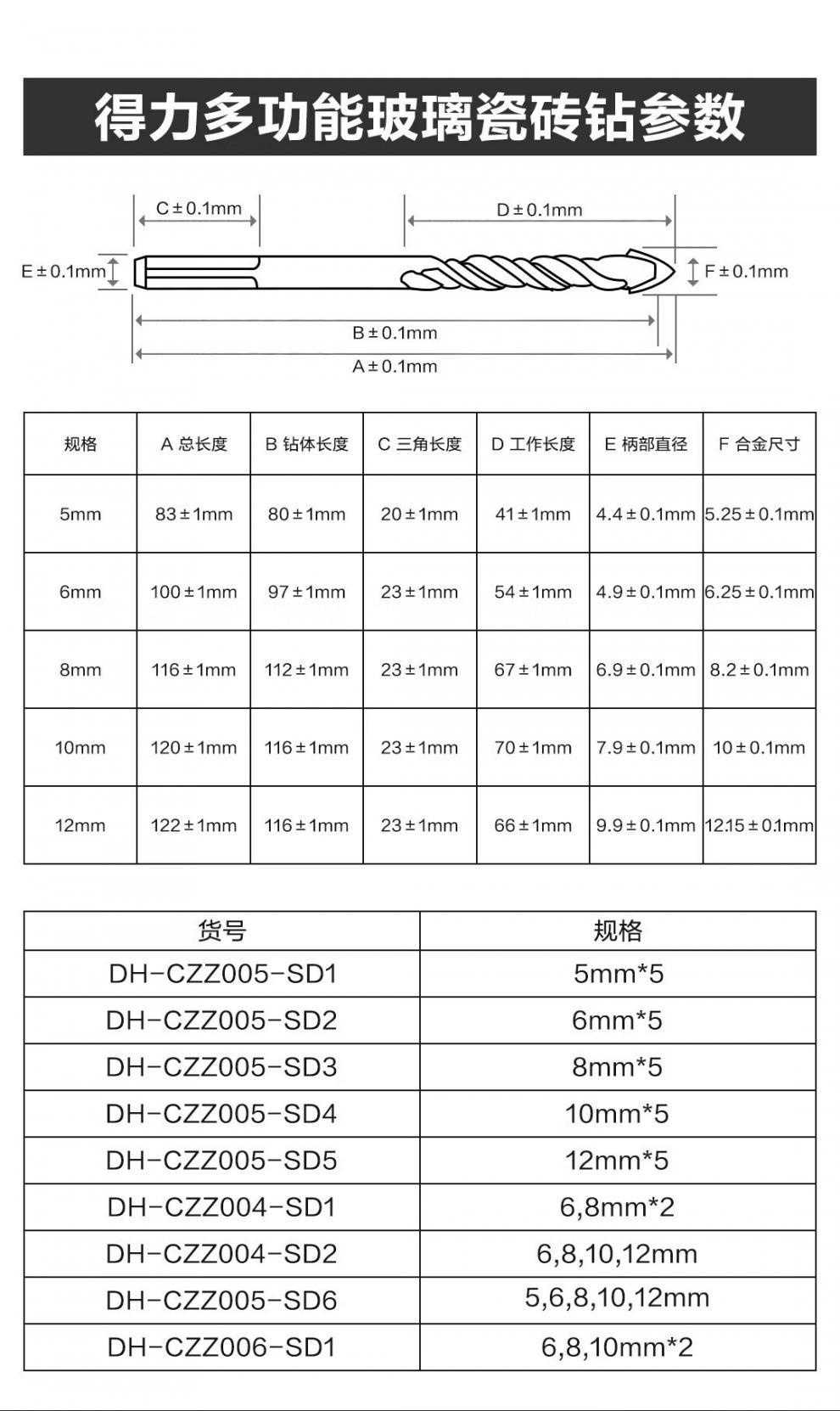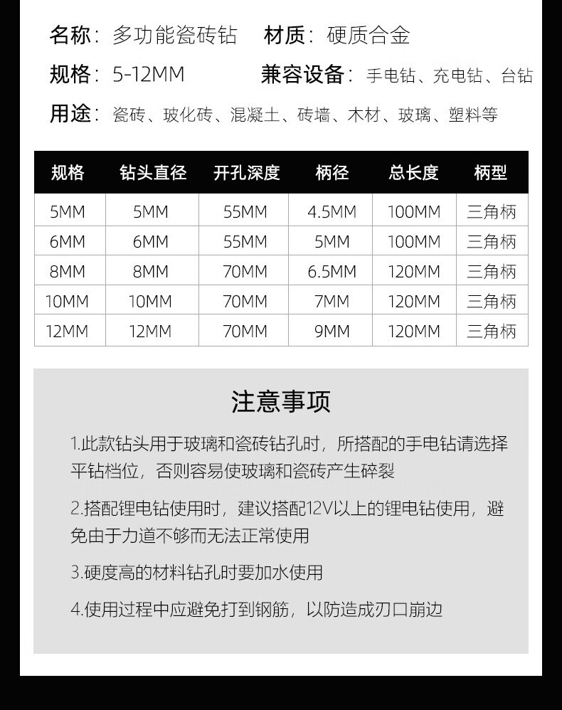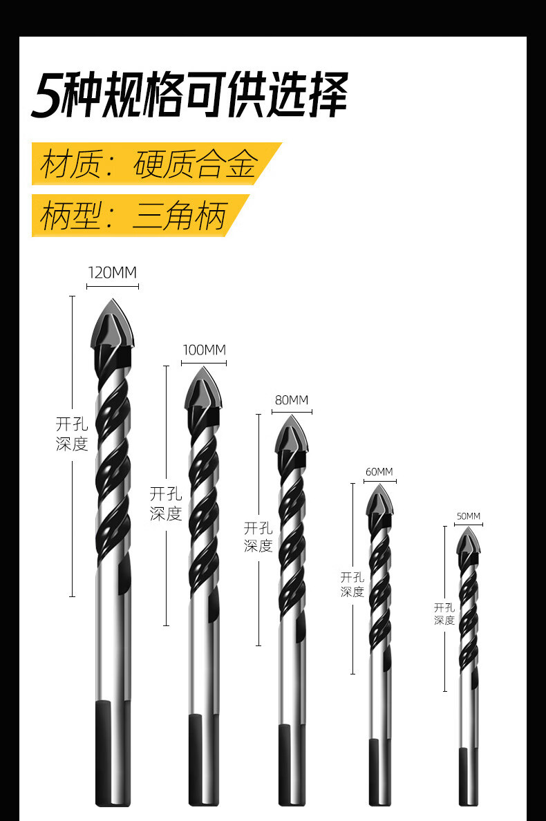델리 전기 드릴 비트 세라믹 타일 드릴 비트 유리 목재 금속 손 드릴 다기능 합금 삼각형 도매
