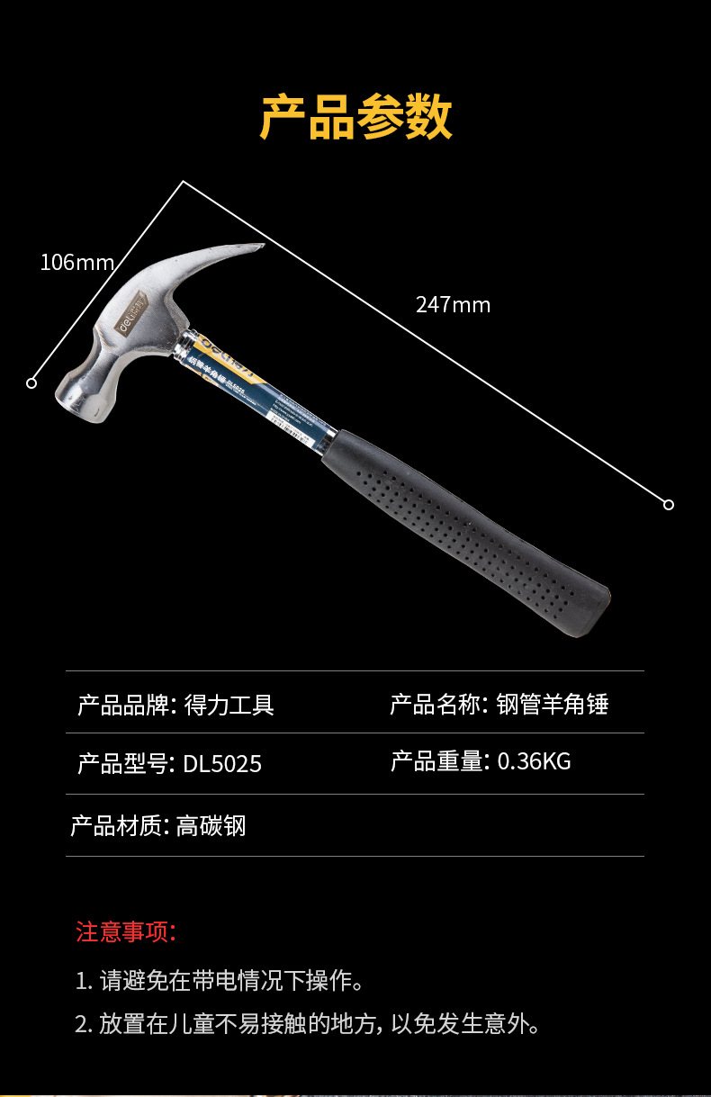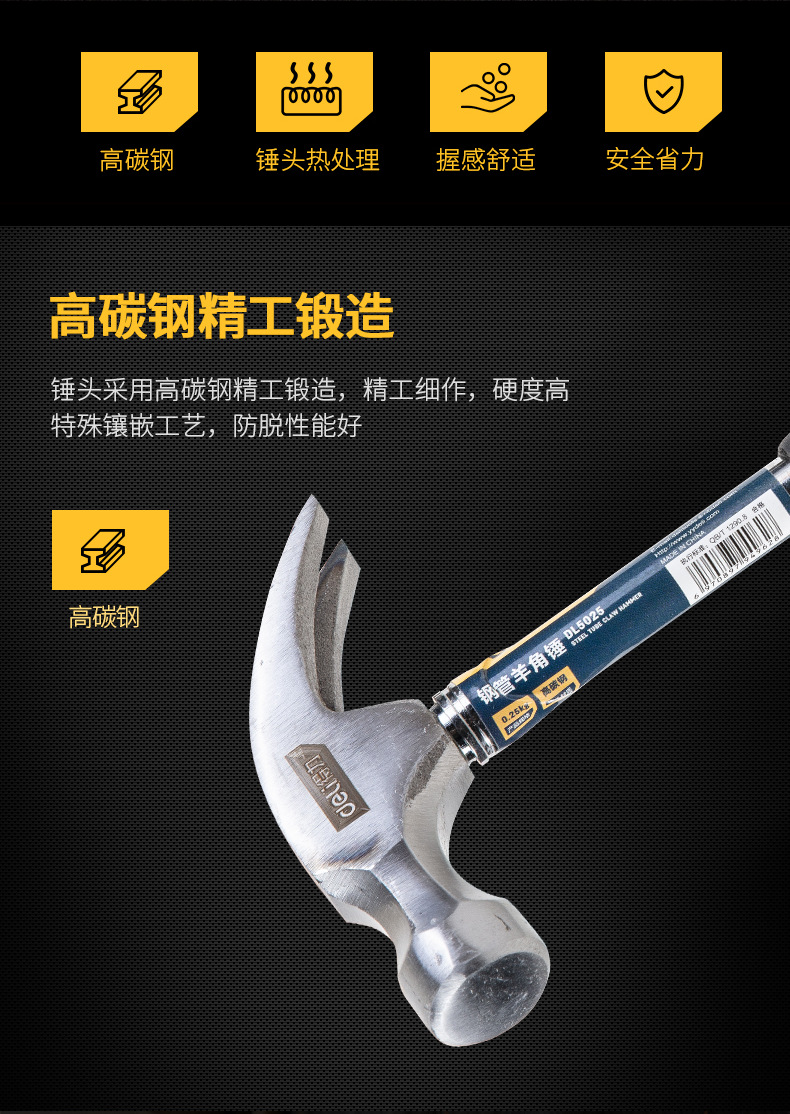 • 0.25kg 강관 손잡이 클로 해머 DL5025