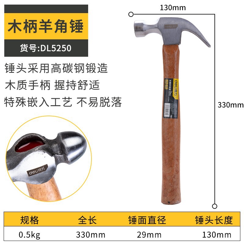 • 0.5kg 나무 손잡이 클로 해머 DL5250