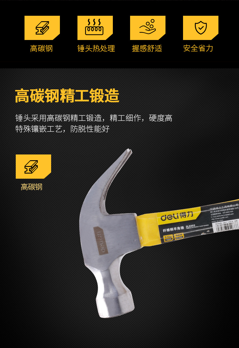 • 0.5kg 섬유 손잡이 클로 해머 DL5002