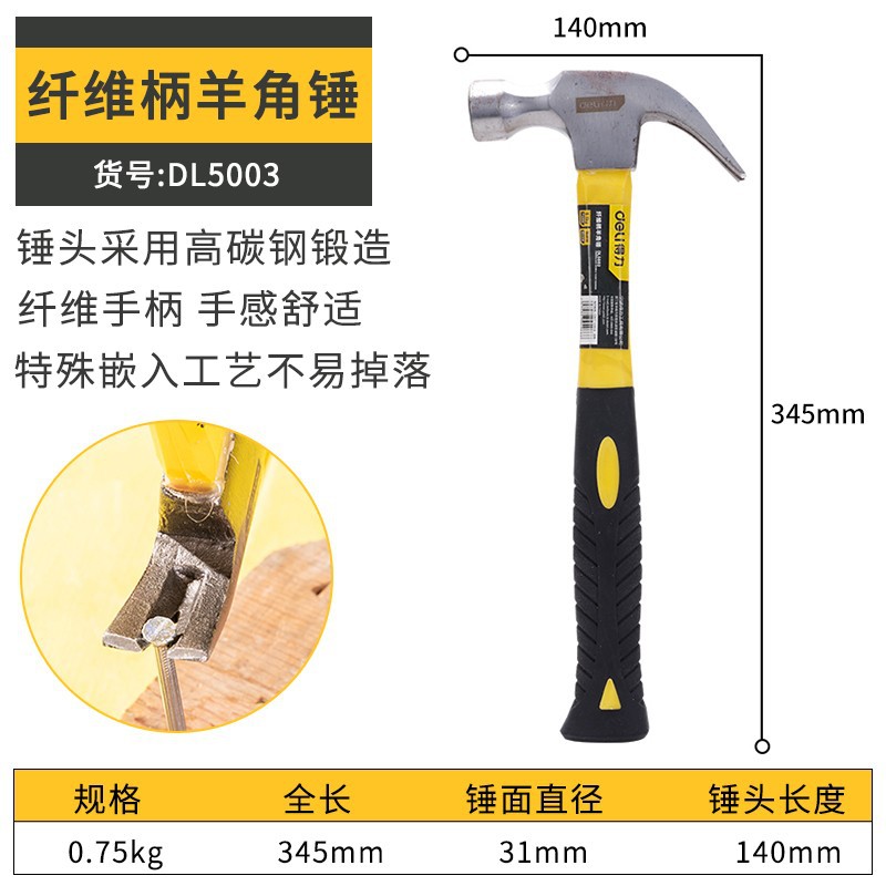 • 0.75kg 섬유 손잡이 클로 해머 DL5003