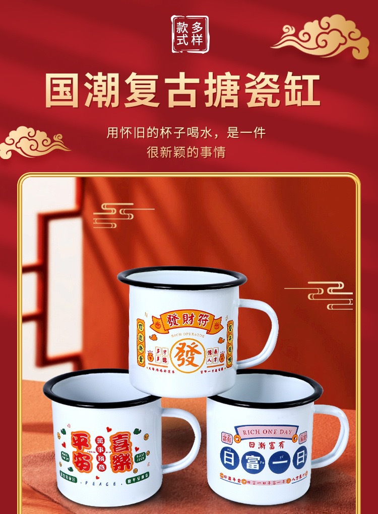 두꺼운 에나멜 컵 귀여운 만화 패턴 머그잔 차 컵 여분의 두꺼운 에나멜 차 항아리 향수 커플 물 컵스토어 가기