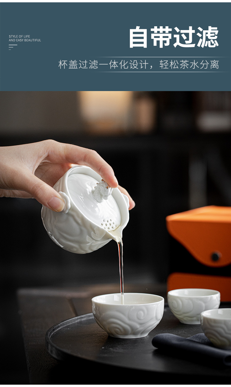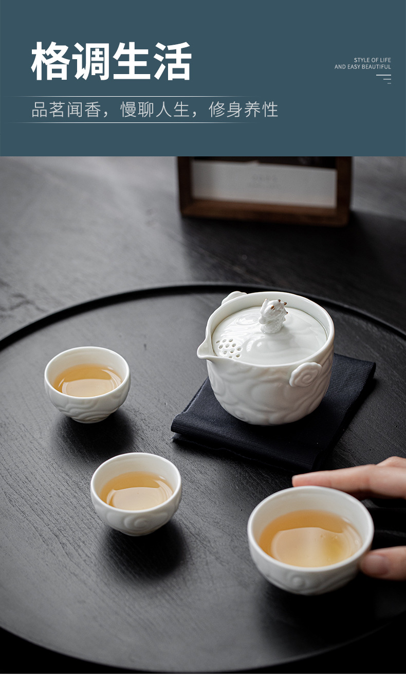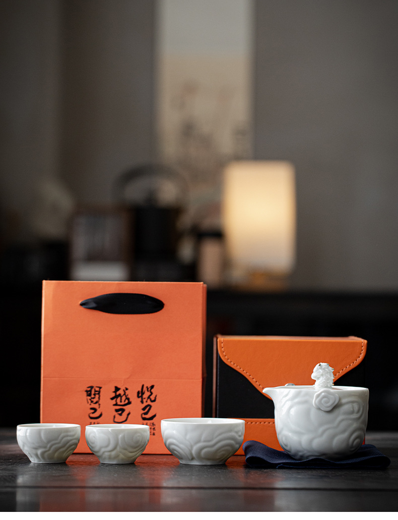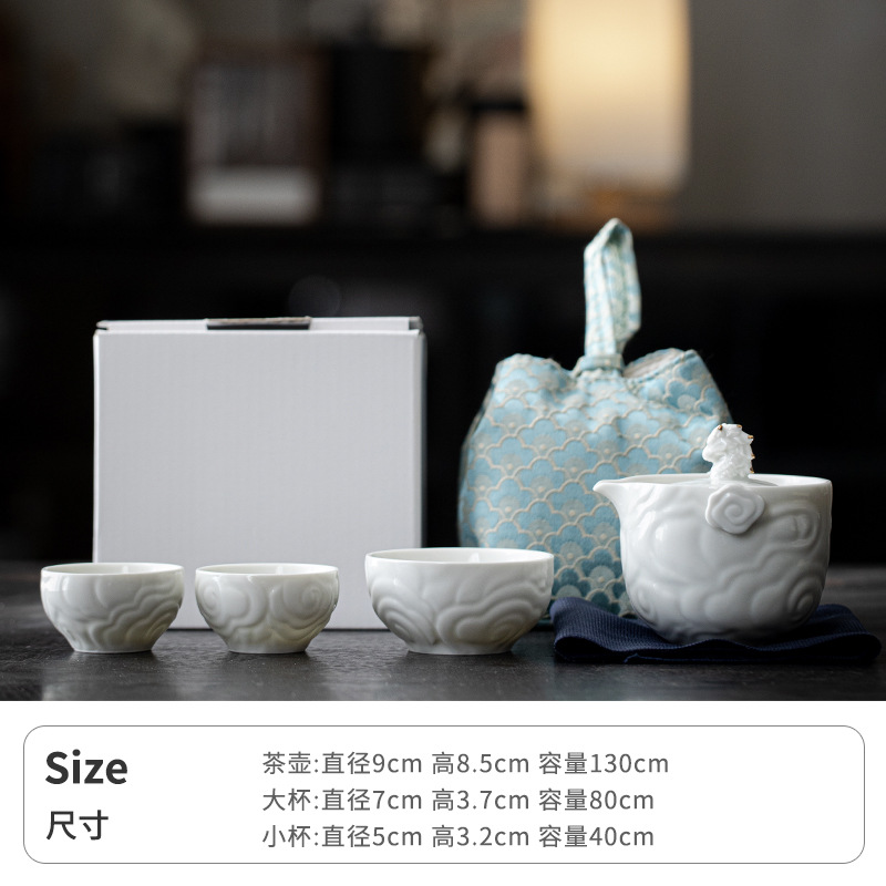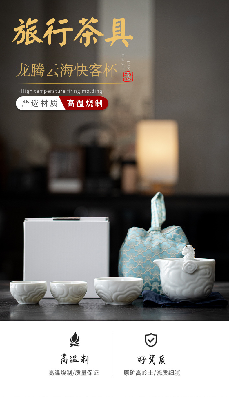 Longnian Express Cup, 1 냄비, 3 컵, 2024 비즈니스 선물, 봄 축제 차 세트, 세라믹 여행 로고스토어 가기