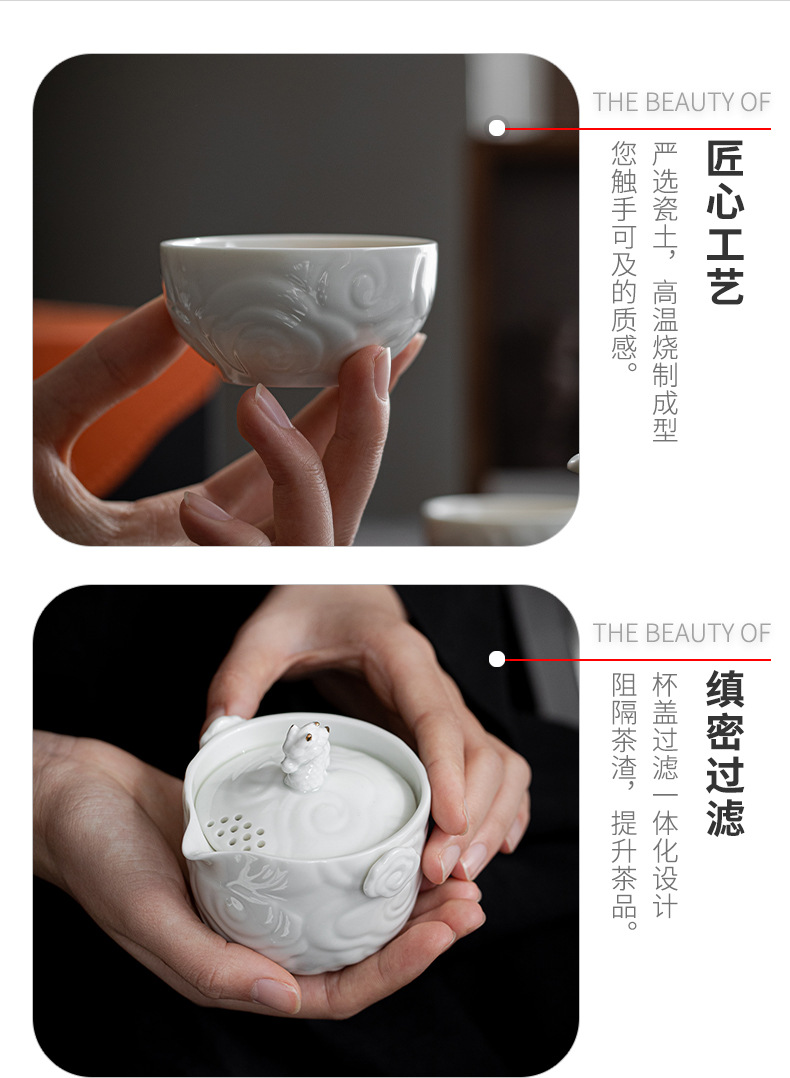 Longnian Express Cup, 1 냄비, 3 컵, 2024 비즈니스 선물, 봄 축제 차 세트, 세라믹 여행 로고