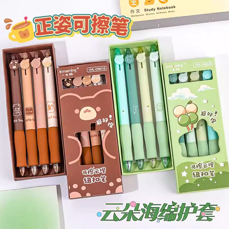Yimulin 지울 수있는 젤 펜 프레스 물 펜 프레스 타입 0.5 총알 크리스탈 블루 카본 블랙 모 쉽게 별 변경