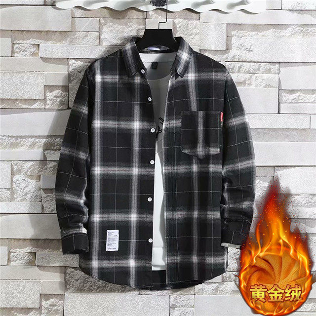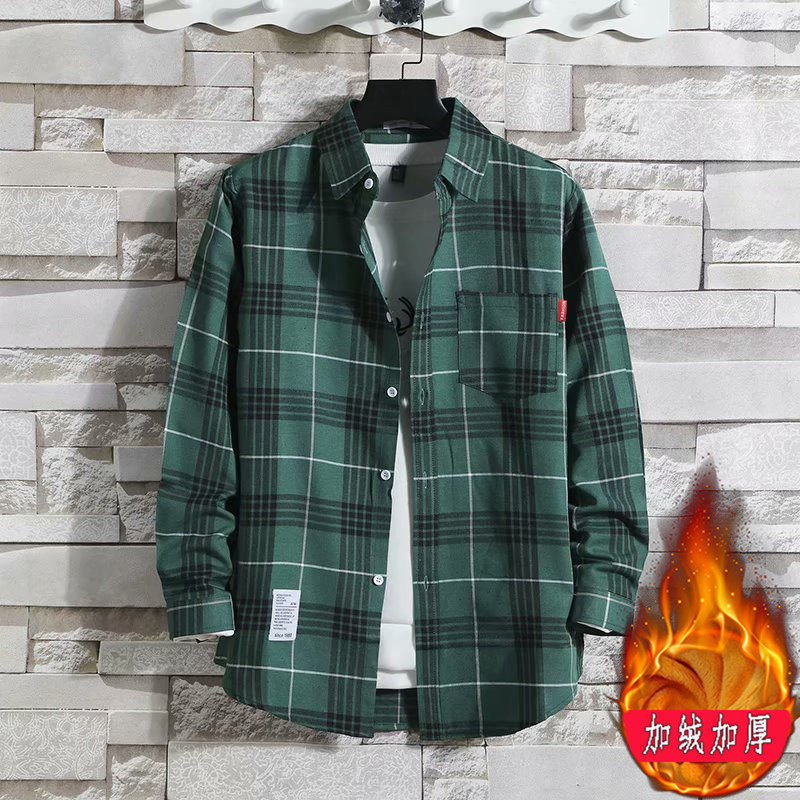 격자 무늬 셔츠 남자의 겨울 새로운 긴 소매 기모 두꺼운 느슨한 따뜻한 청소년 한국 스타일 코트 트렌디 셔츠