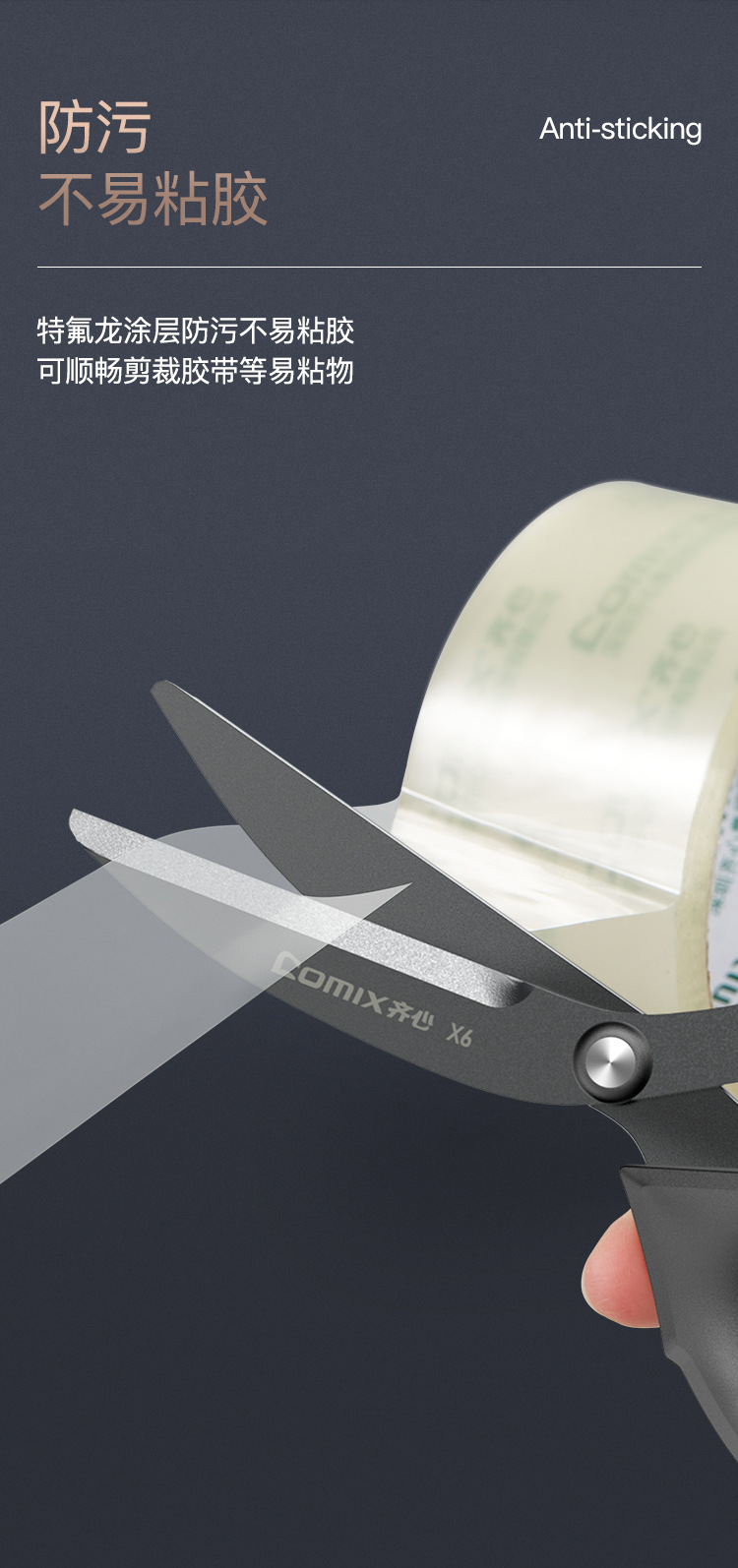 Qixin 노동 절약 비 접착 가위 높은 모양의 사무실 홈 접착 방지 테플론 스몰 사이즈 어린이 학생 수제