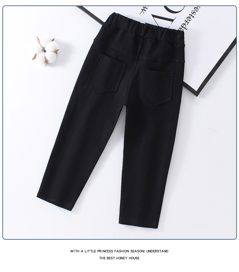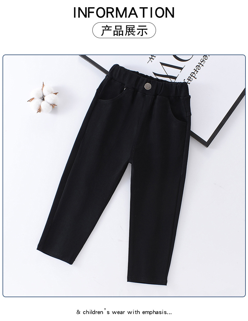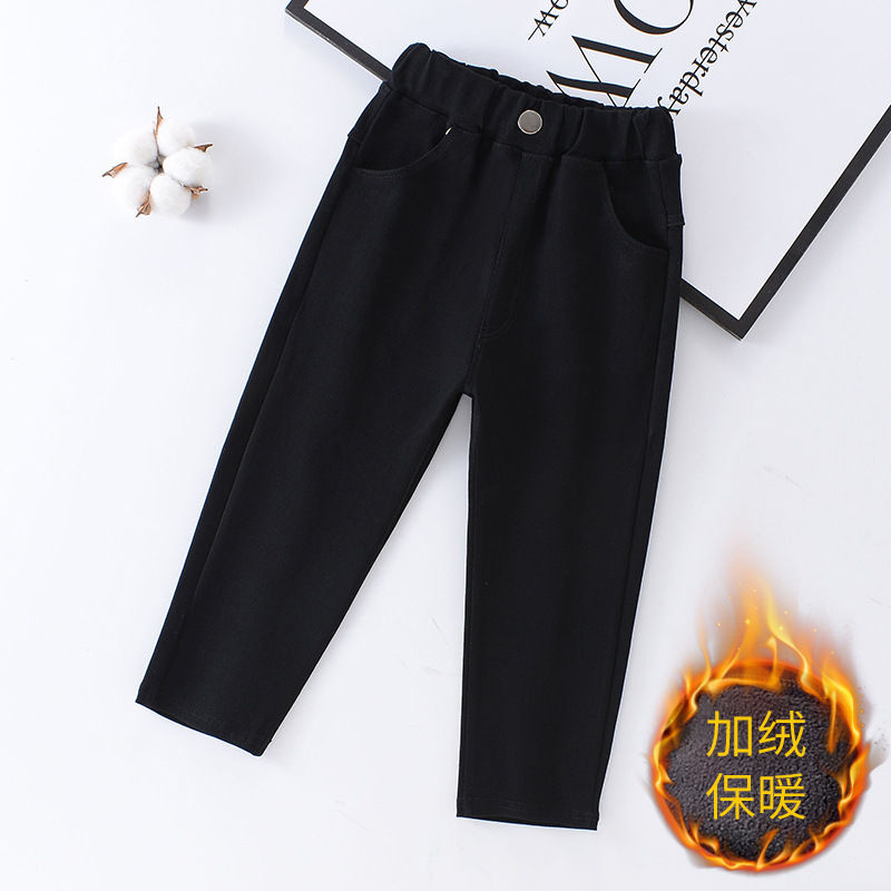 소녀 기모 바지 가을 및 겨울 단색 중소 어린이 연필 바지 어린이 유행 여성 바지스토어 가기