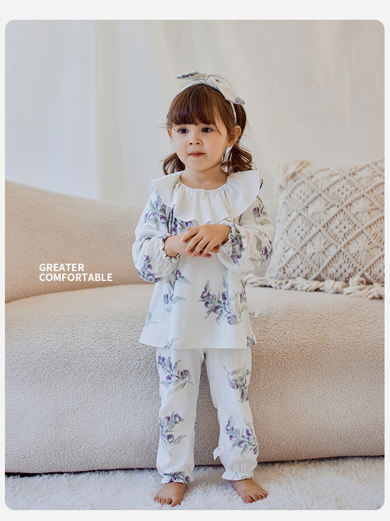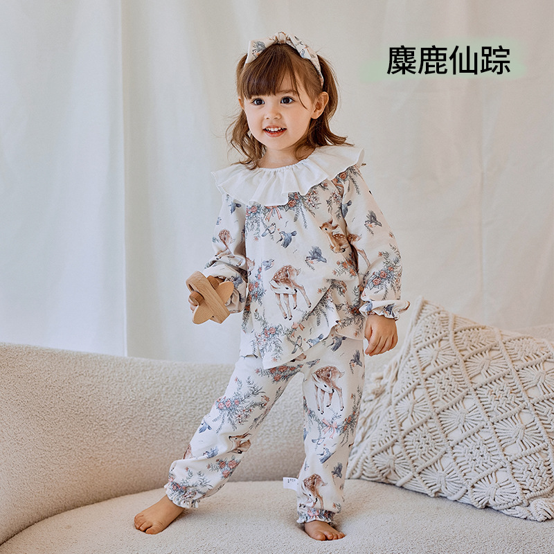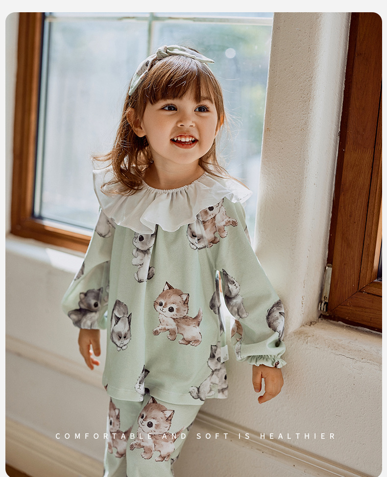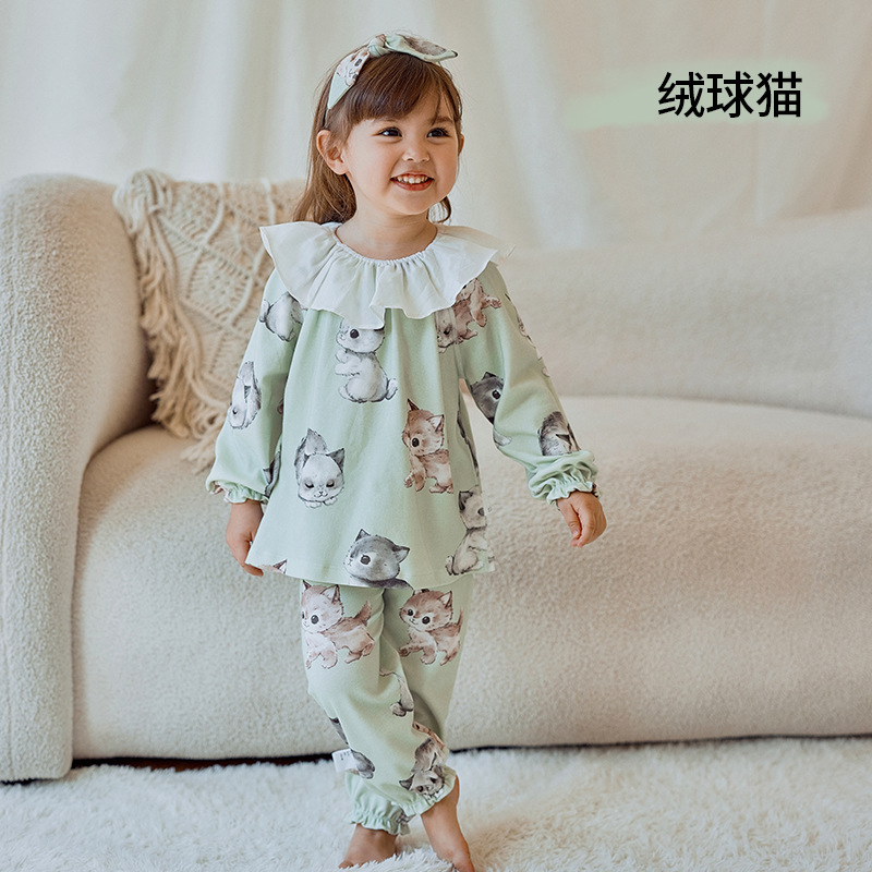소녀를위한 어린이 잠옷 가을과 겨울 아기의 순면 클래스 에어컨 옷 모든면 소녀의 얇은 가을 가정 옷