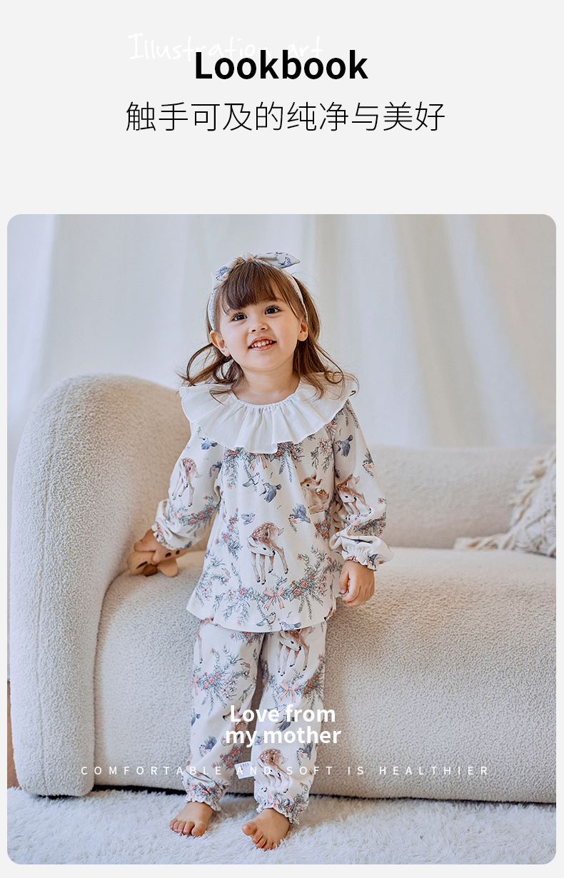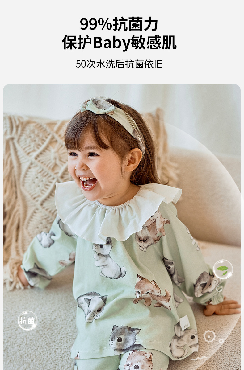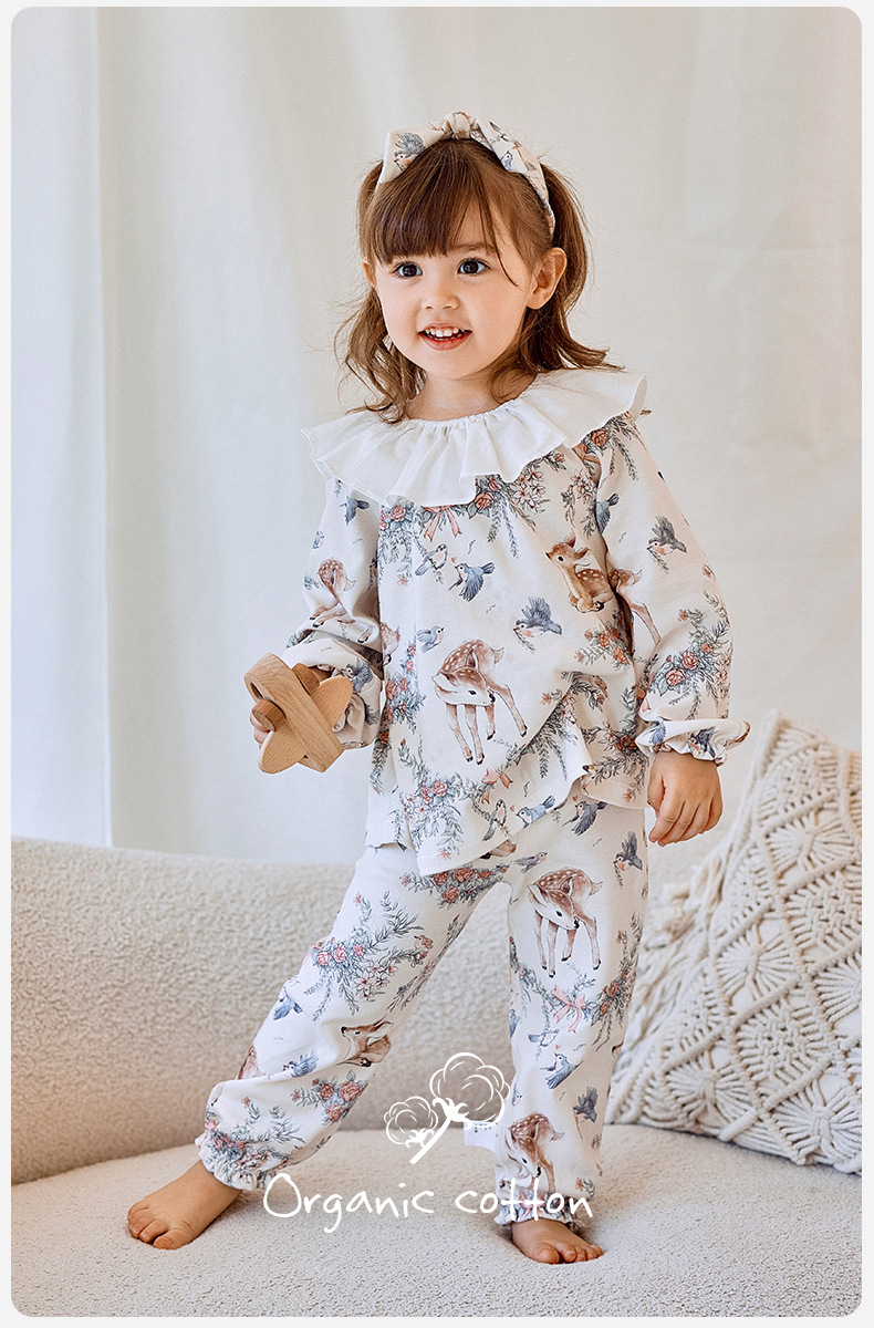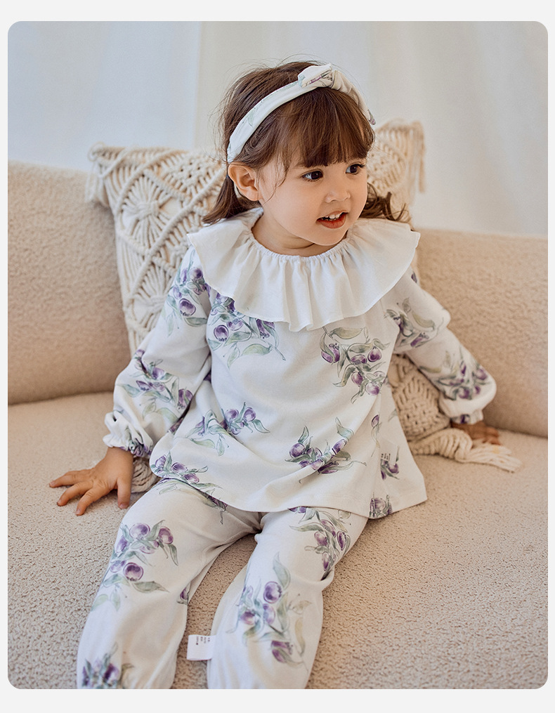 소녀를위한 어린이 잠옷 가을과 겨울 아기의 순면 클래스 에어컨 옷 모든면 소녀의 얇은 가을 가정 옷