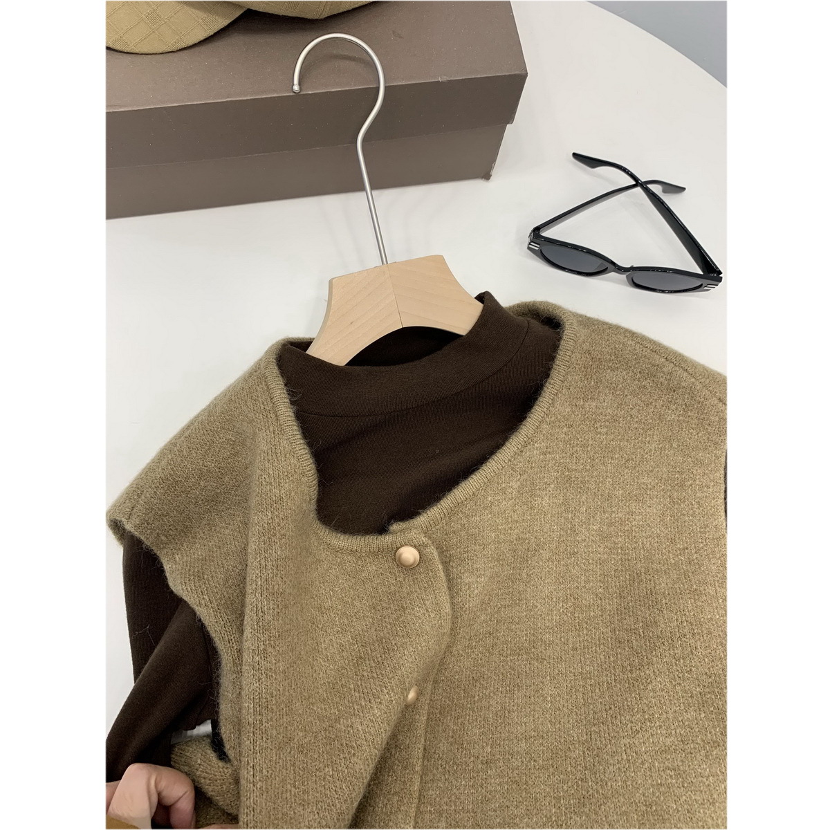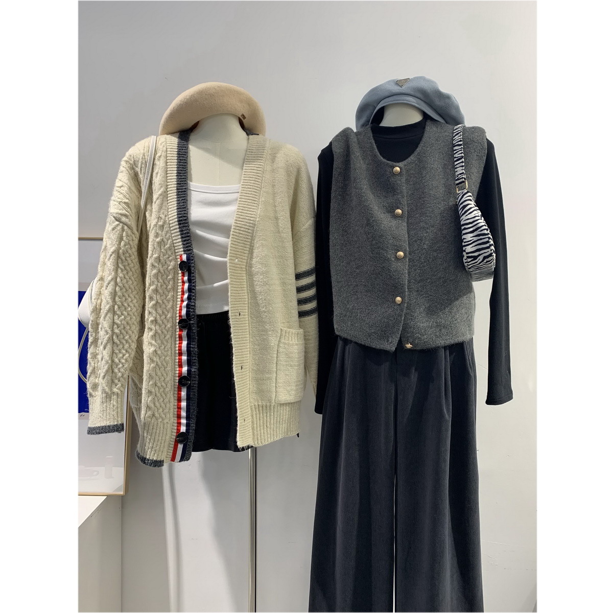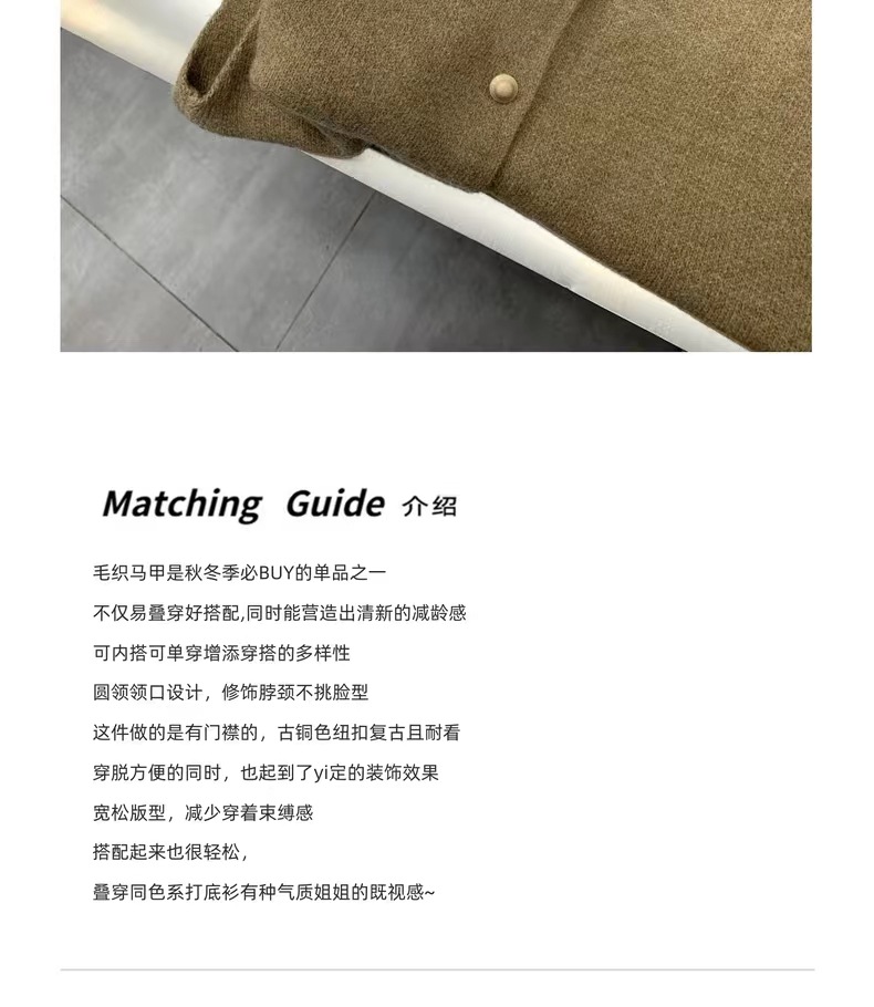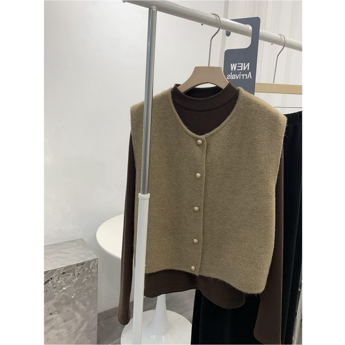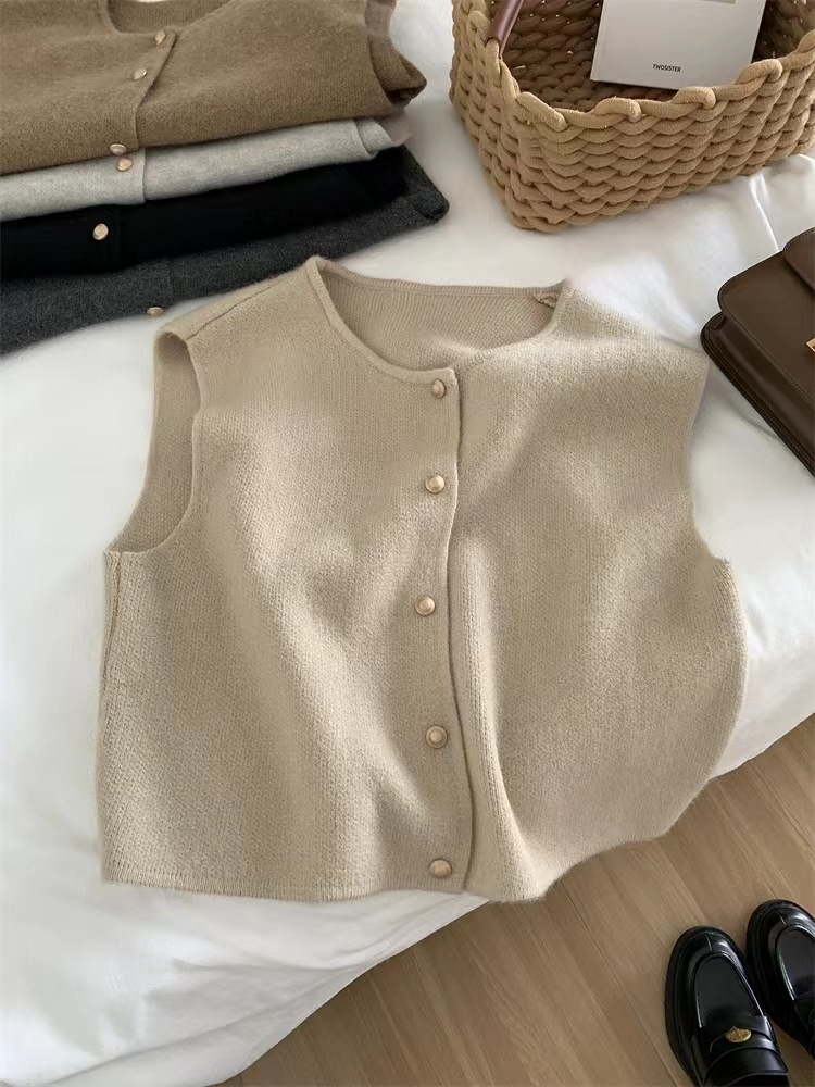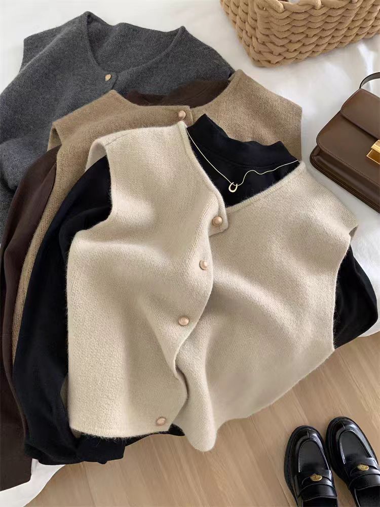 프랑스 스타일 복고풍 작은 금 버클 둥근 목 니트 조끼 여성의 느슨한 한국 스타일 다재다능한 부드러운 슬리밍 봄과 가을 스택 스웨터