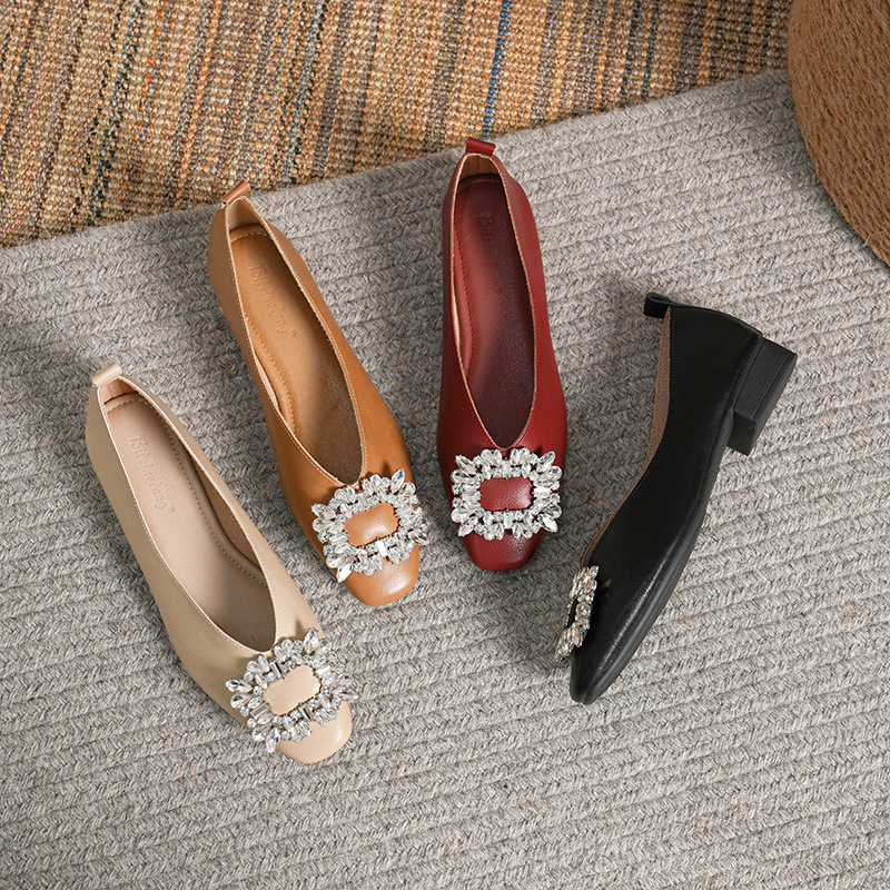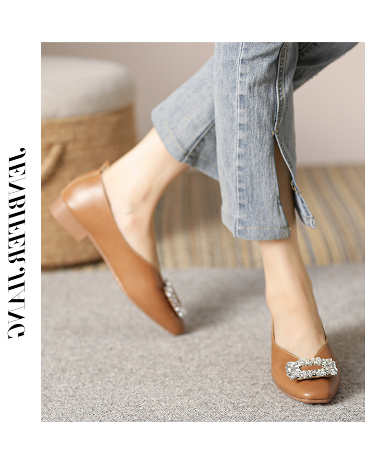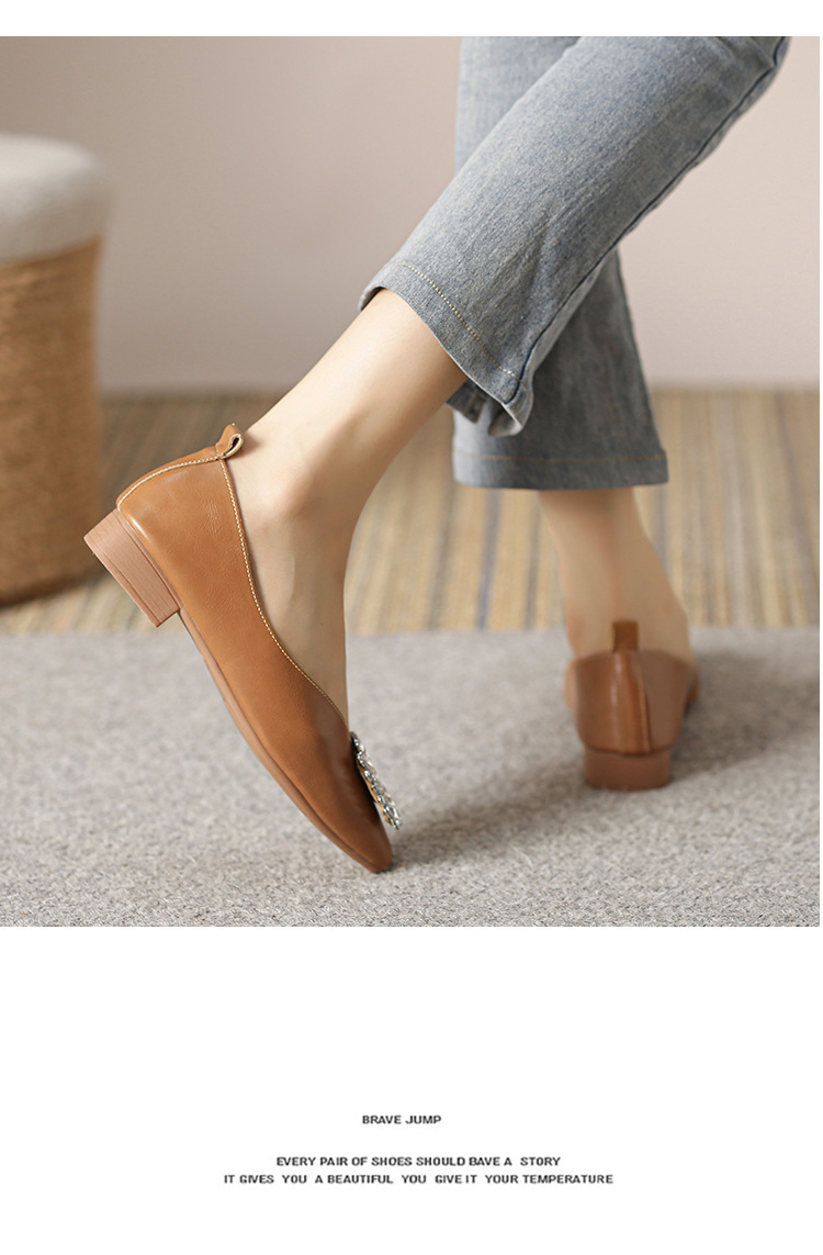 정품 가죽 로퍼 여성용 가을 플랫 2023 새로운 얕은 입 싱글 레이어 신발 부드러운 바닥 마더 슈즈 플러스 사이즈 여성 신발 41-43스토어 가기