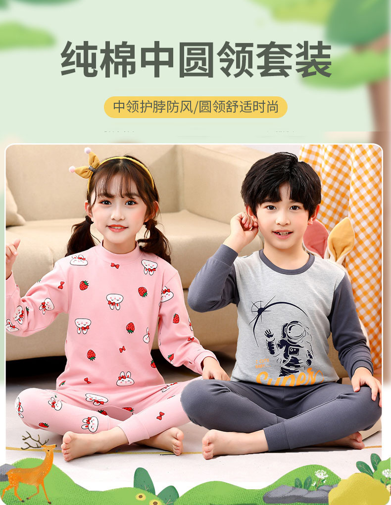 가을과 겨울 어린이 미드 칼라 가을 옷 긴 바지 순면 세트 청소년 학생 중 큰 어린이 홈 착용 속옷스토어 가기