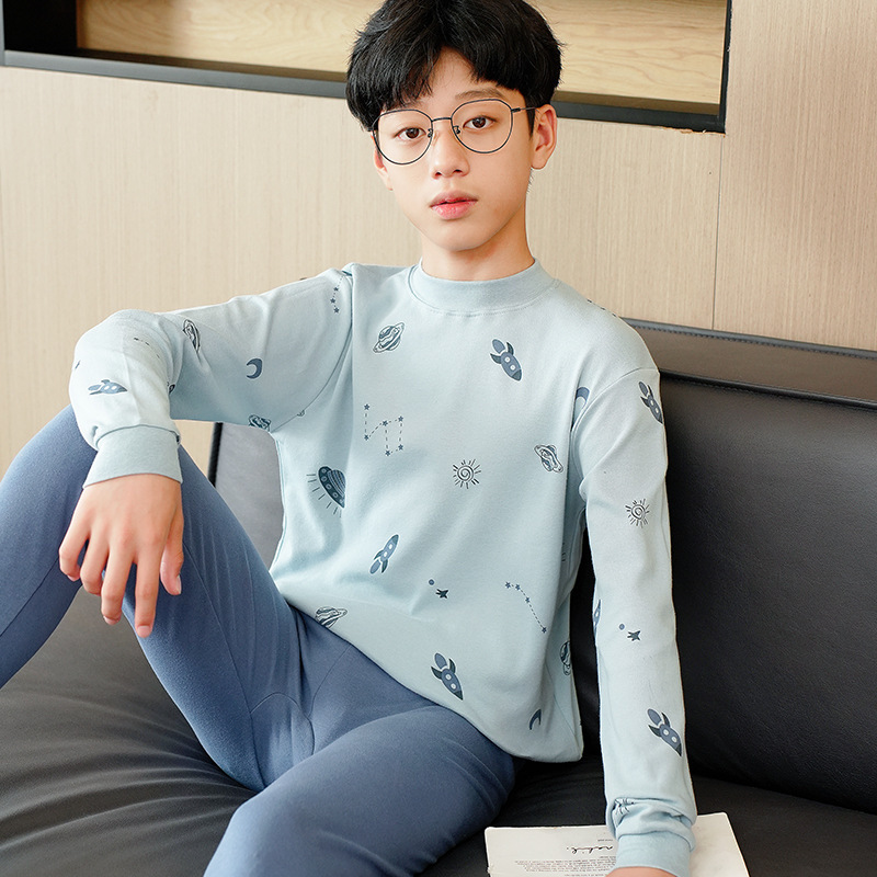가을과 겨울 어린이 미드 칼라 가을 옷 긴 바지 순면 세트 청소년 학생 중 큰 어린이 홈 착용 속옷