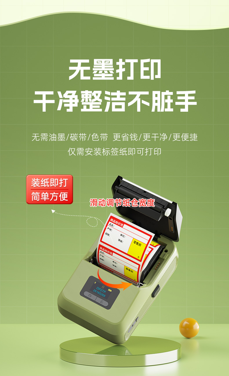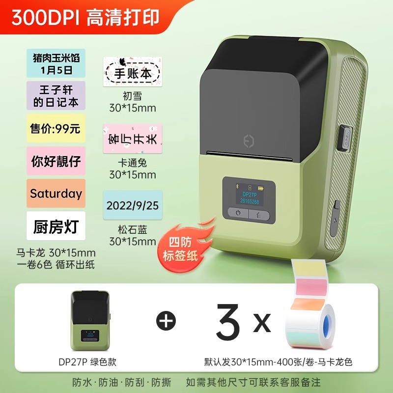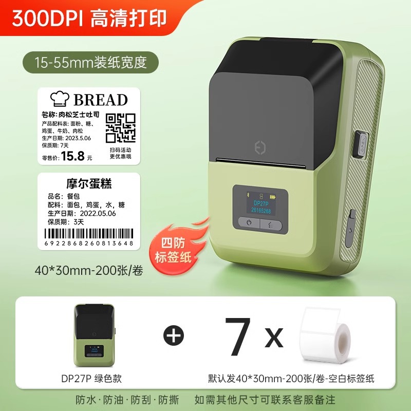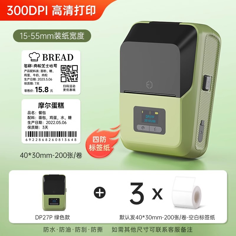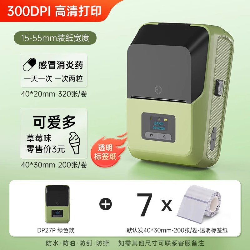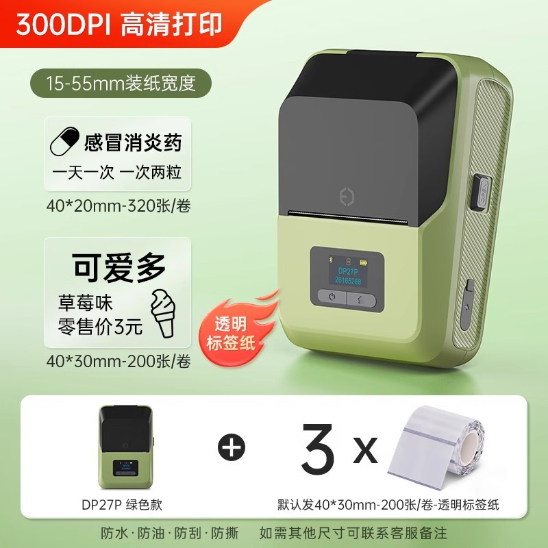 [300dpi HD 인쇄] De Tong DP27P 라벨 프린터 블루투스 휴대용 열 휴대용스토어 가기
