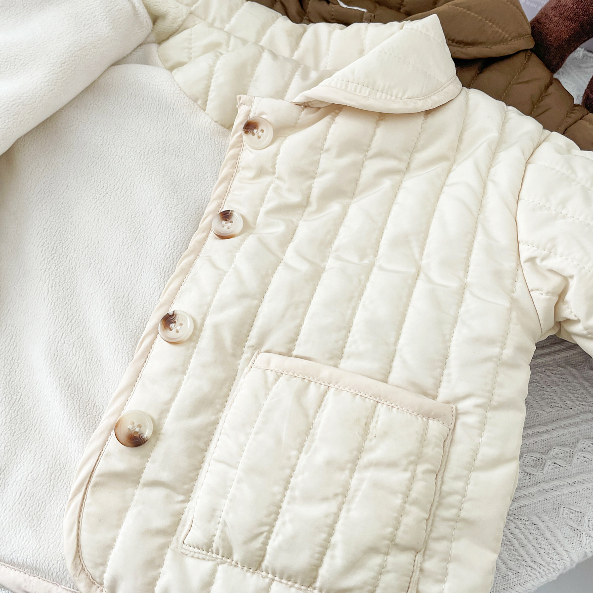 한국판 아기용 겨울용 플리스 안감 남녀 아기옷 카라가 있는 가디건 2025 신생아용 따뜻한 면 재킷 재고 정리스토어 가기