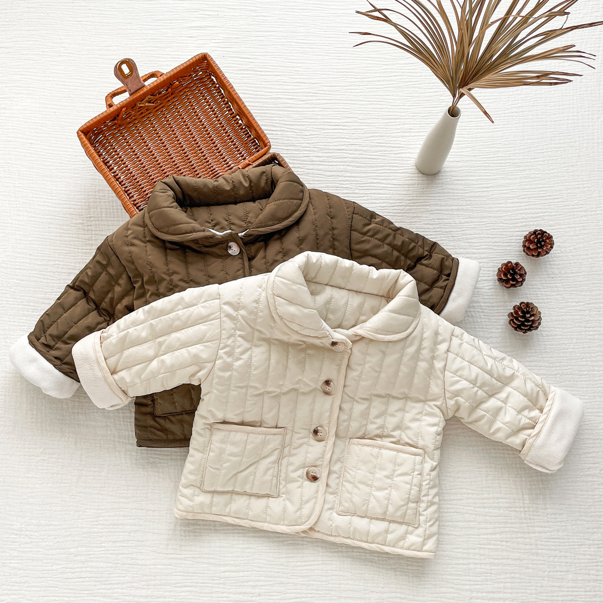 한국판 아기용 겨울용 플리스 안감 남녀 아기옷 카라가 있는 가디건 2025 신생아용 따뜻한 면 재킷 재고 정리