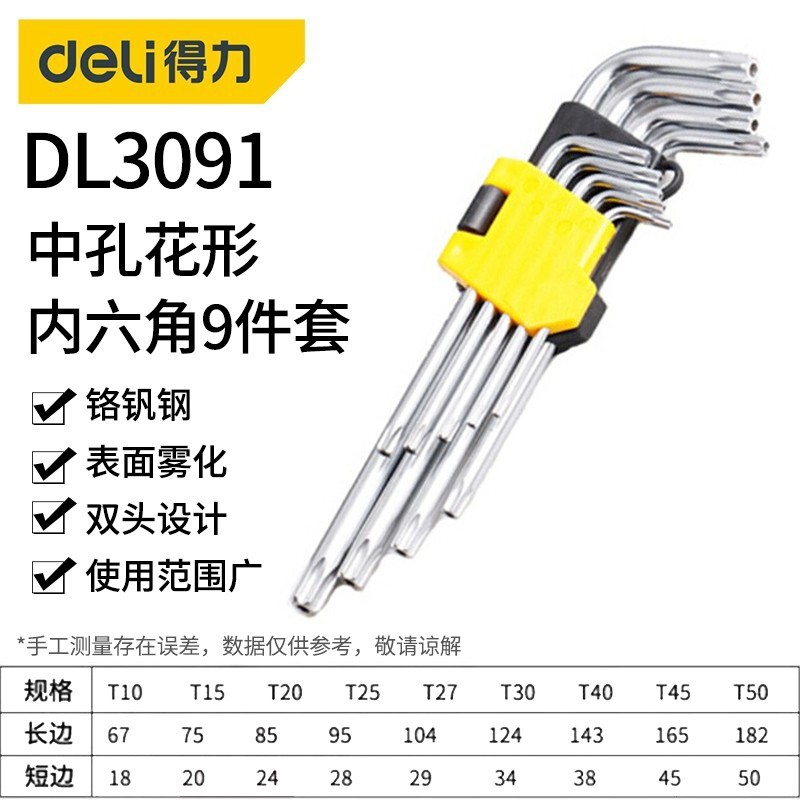 • 긴 중간 구멍 패턴 육각형 소켓 9 피스 세트 DL3091