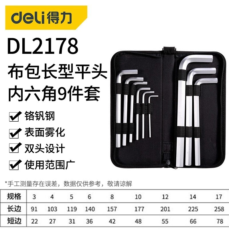 • 천 가방 긴 플랫 헤드 육각 소켓 9 피스 세트 DL2178