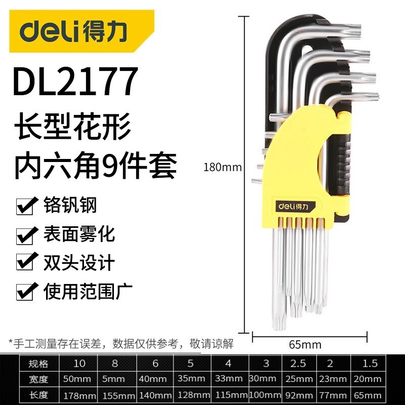• 긴 중간 구멍 패턴 육각형 소켓 9 피스 세트 DL2177