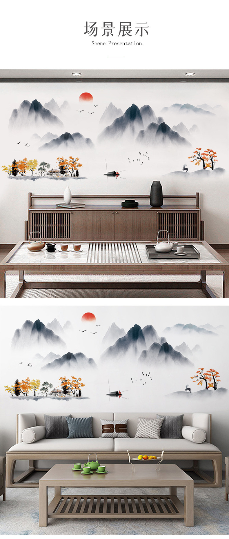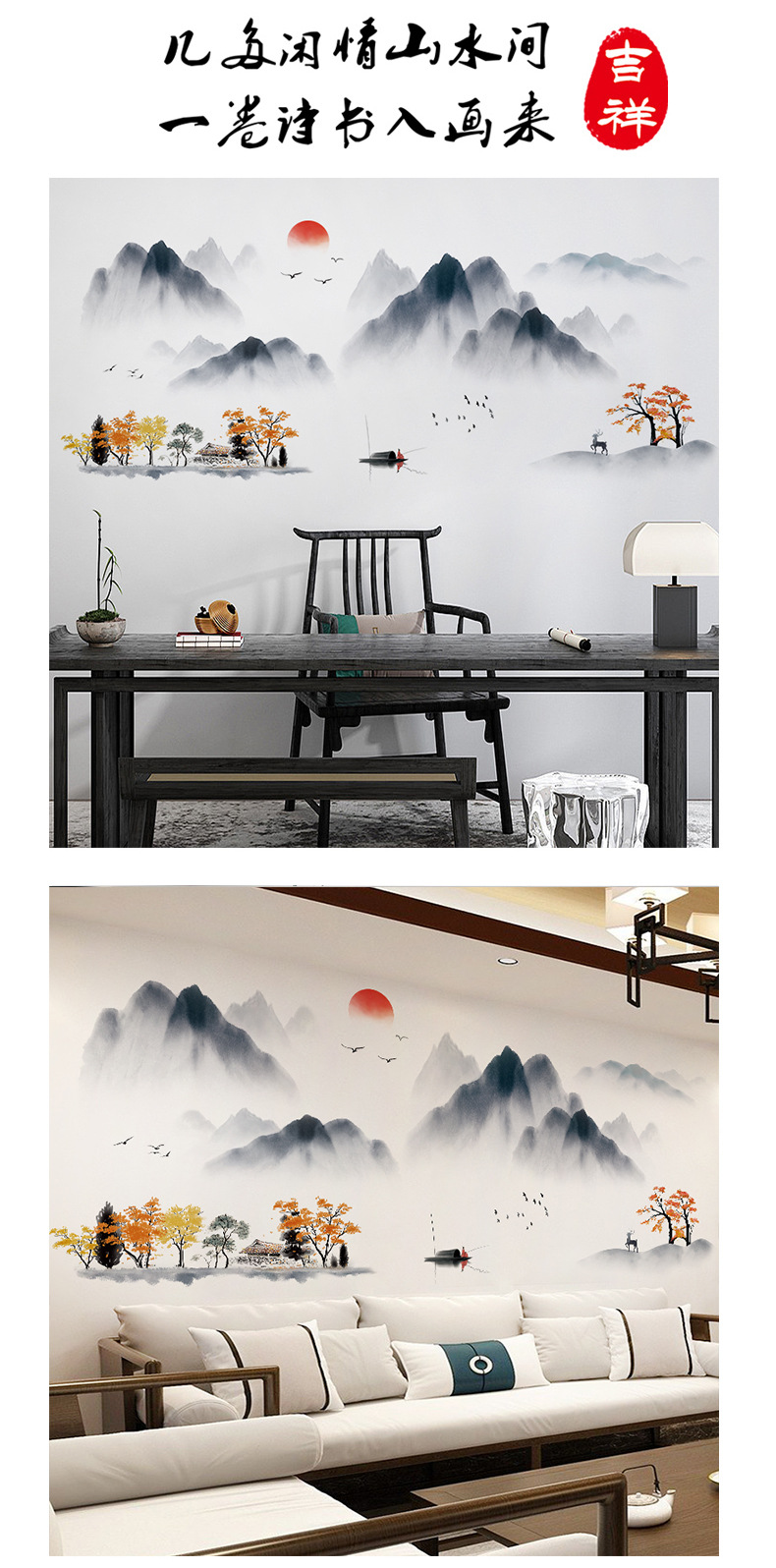 Huizhicai 벽 스티커 CH69099 워터 쇼 산 풍경 그림 TV 소파 배경 벽 풍경 스티커 산 벽