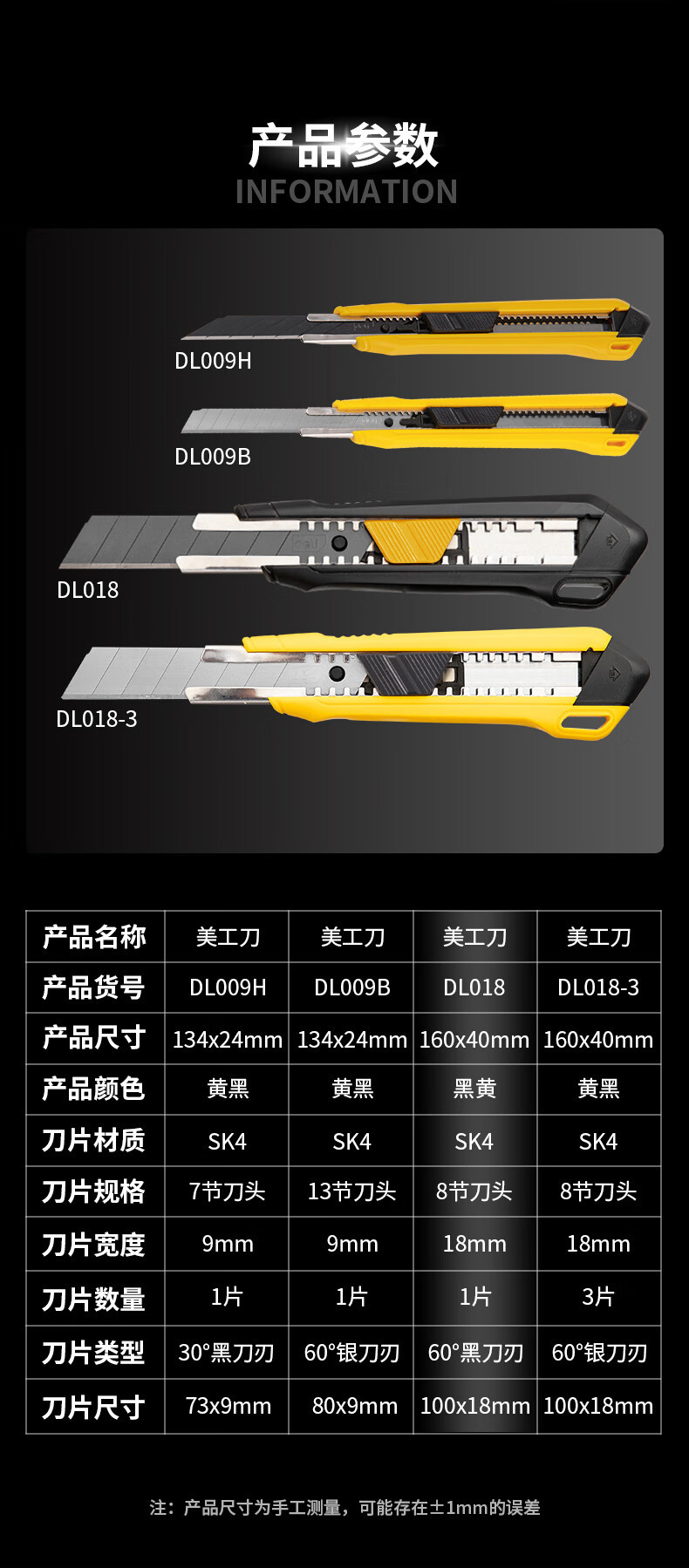 델리 아트 나이프 대형 18m 종이 제거 칼 검은 종이 절단 칼 가정용 포장 해제 칼 높은 탄소 강철 SK4 도매