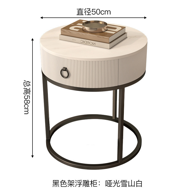 轻奢岩板沙发边几侧边柜客厅简约现代轻奢床头柜圆形小茶几小桌子