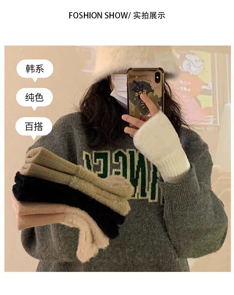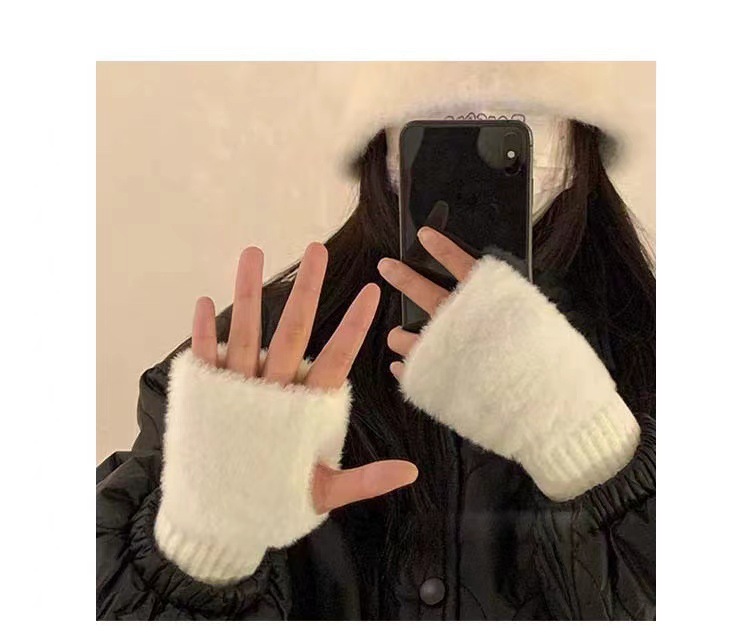 겨울 장갑 따뜻한 니트 손가락없는 반양모 남성과 여성 귀여운 사이클링 핑거리스 자카드 두껍게 성인 손 양말