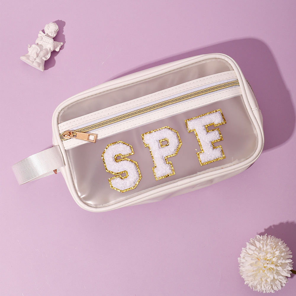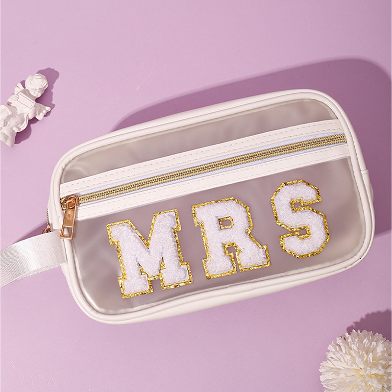 방수 투명 pvc 휴대용 화장품 가방 자수 편지 pu 휴대용 화장품 보관 가방 세탁 가방 아마존