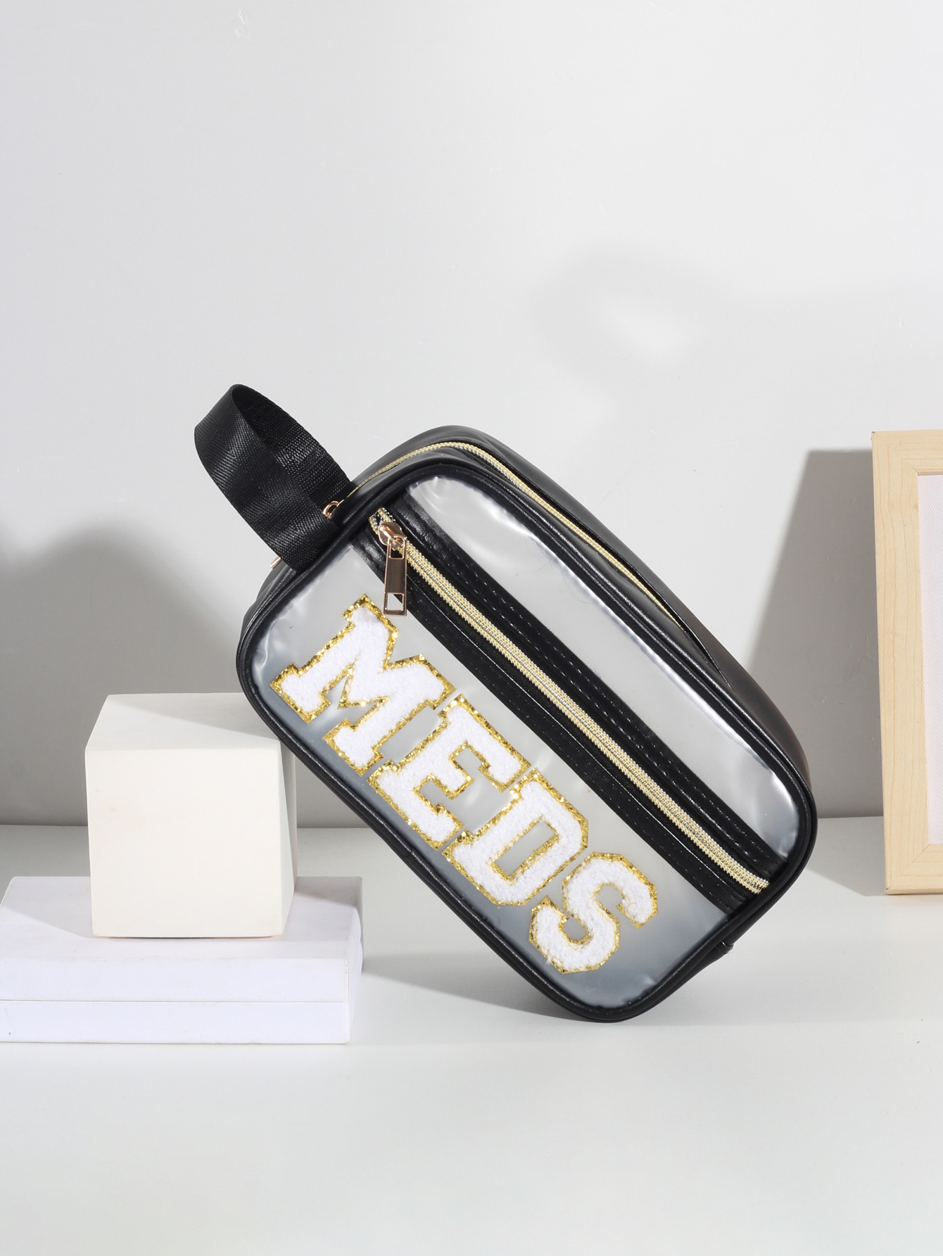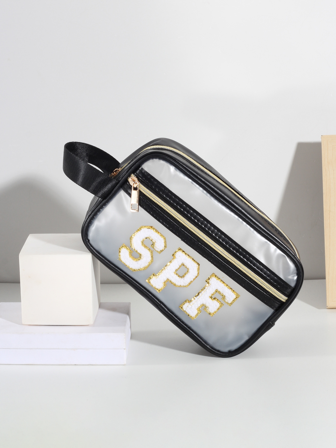 방수 투명 pvc 휴대용 화장품 가방 자수 편지 pu 휴대용 화장품 보관 가방 세탁 가방 아마존스토어 가기
