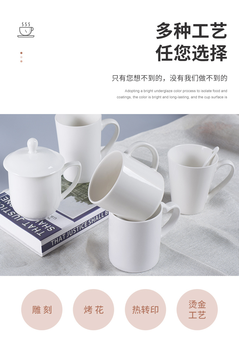 뚜껑이 있는 도매 고급 머그잔 맞춤형 선물 세라믹 커피 컵 흰색 물 컵 새겨진 로고 광고 사진